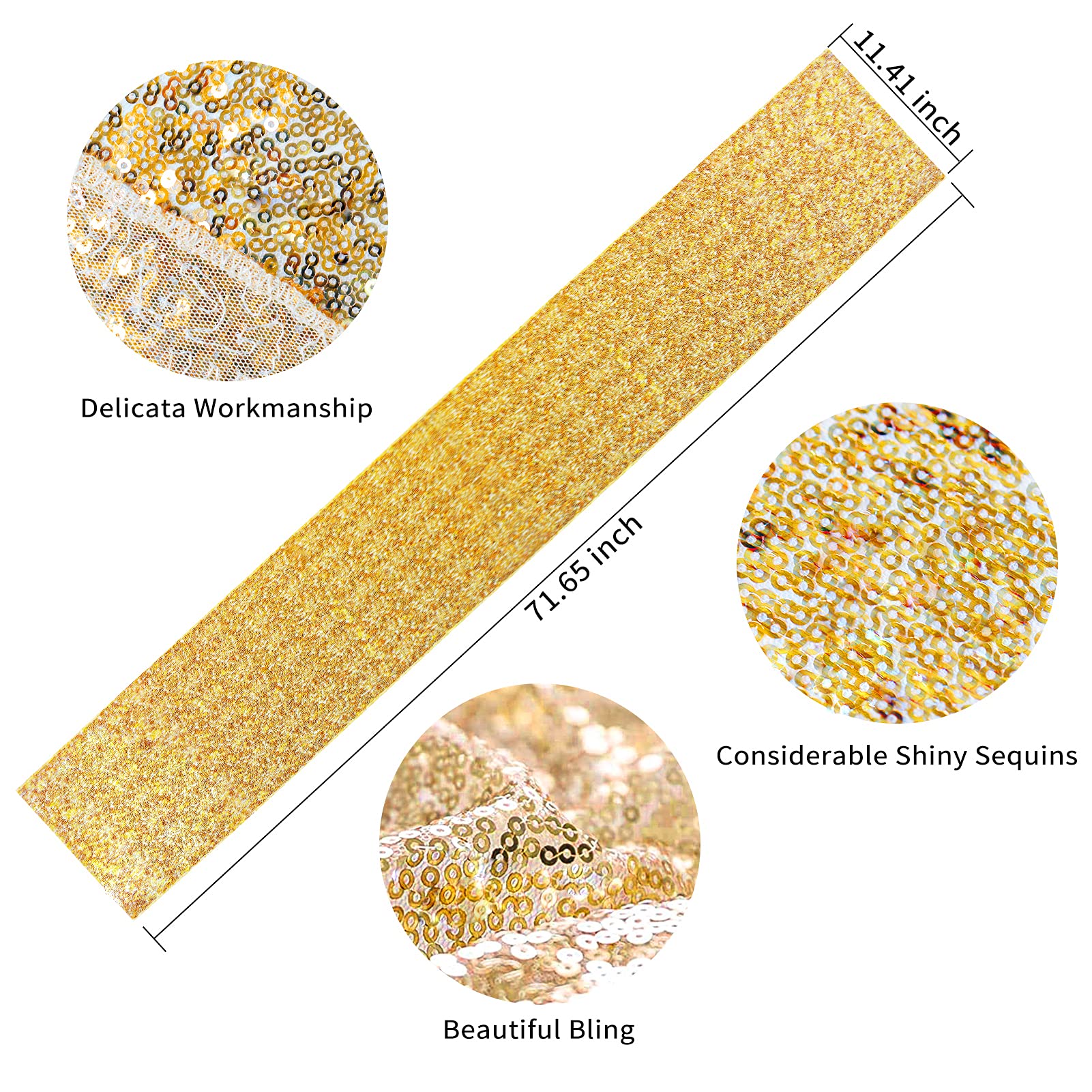 - Widely Use - The beautiful sequin runner is perfect for a bling, sparkle or lavish wedding theme.Gold sequin table runner perfect for catered presentations,baby and bridal showers,birthdays,anniversary,candy buffets,dessert tables and more.