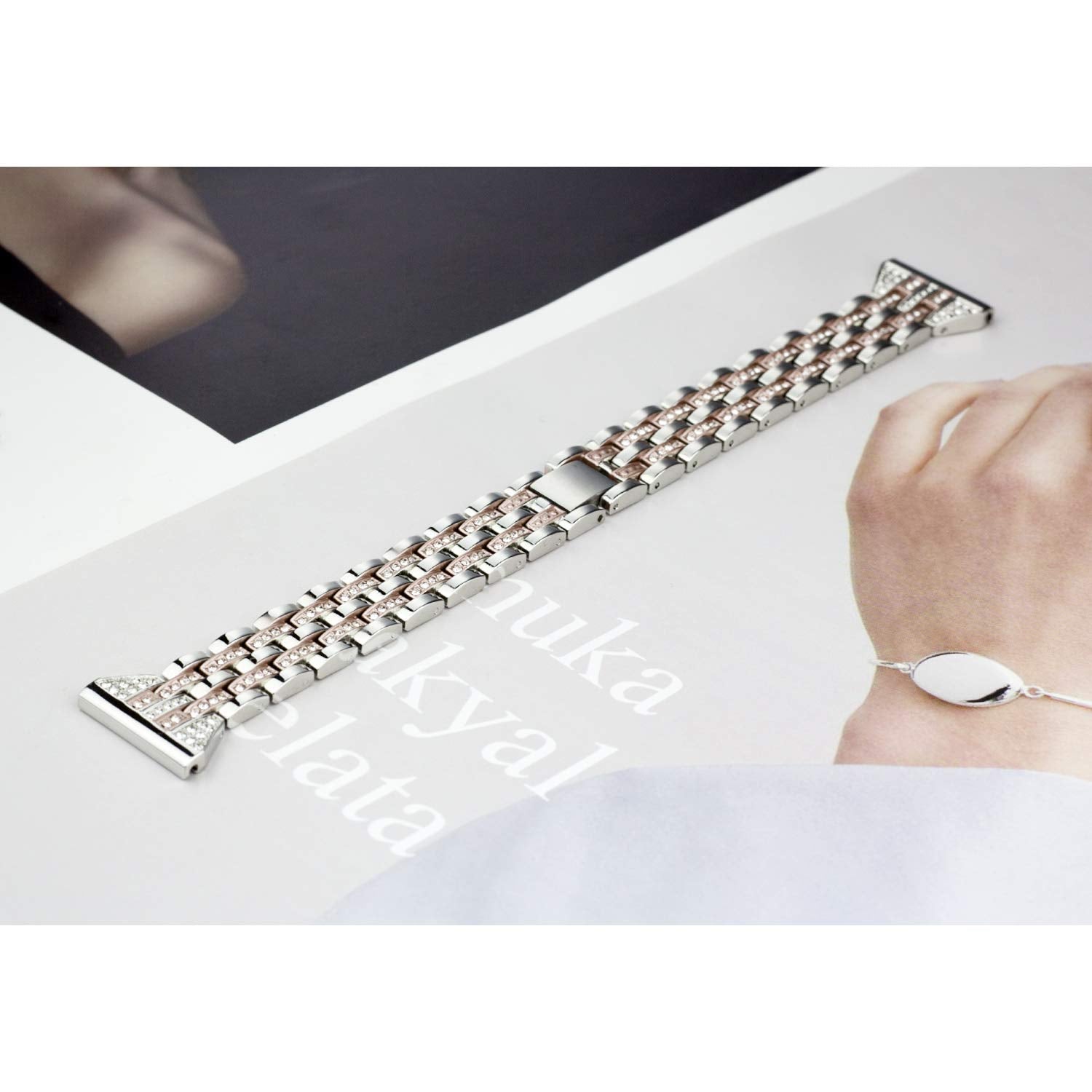 - Original Replacement Bands – Bands Compatible with Fitbit Versa 2/Versa Lite/Versa, Women Replacement Metal Rhinestone Bling Bracelet Wristband, Silver with Rose Gold by Mtozon