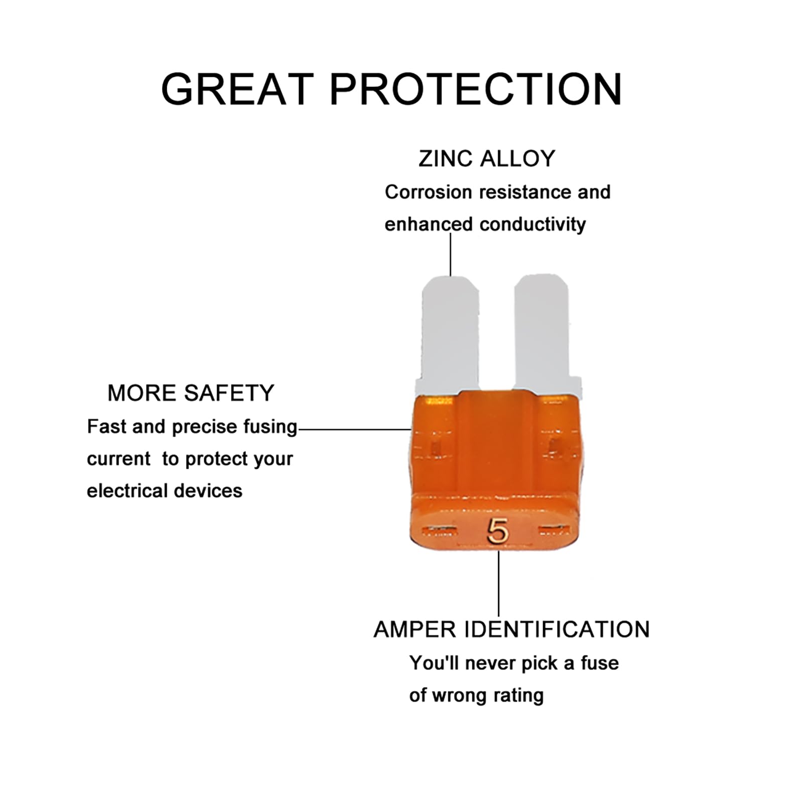 - GREAT PROTECTION - The terminals of these fuses are made from tin-plated zinc, which provides corrosion resistance and enhanced conductivity. MuHize fuses are made of premium materials and provide fast and precise fusing current to protect your vehicles and electrical devices from short circuits and overloads.