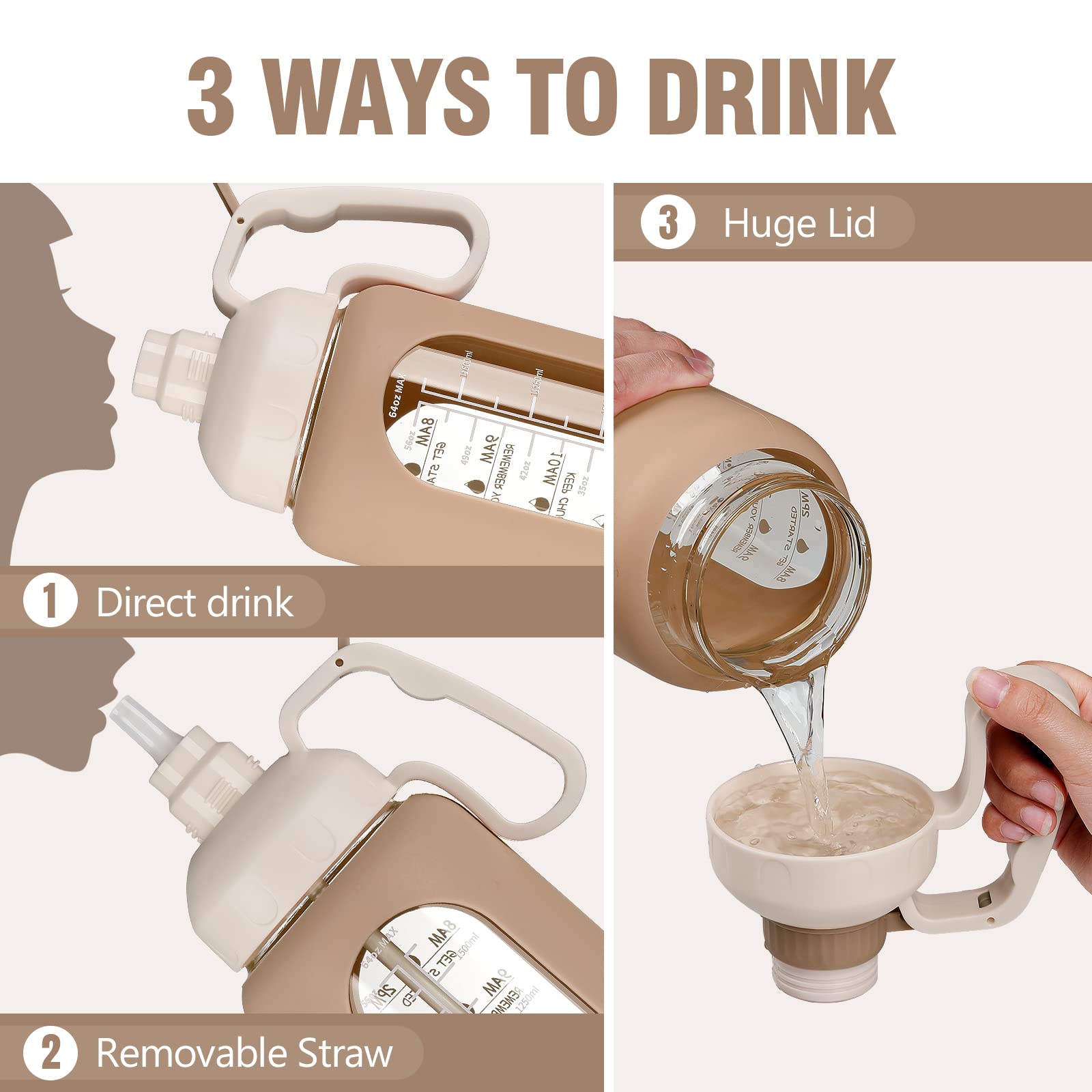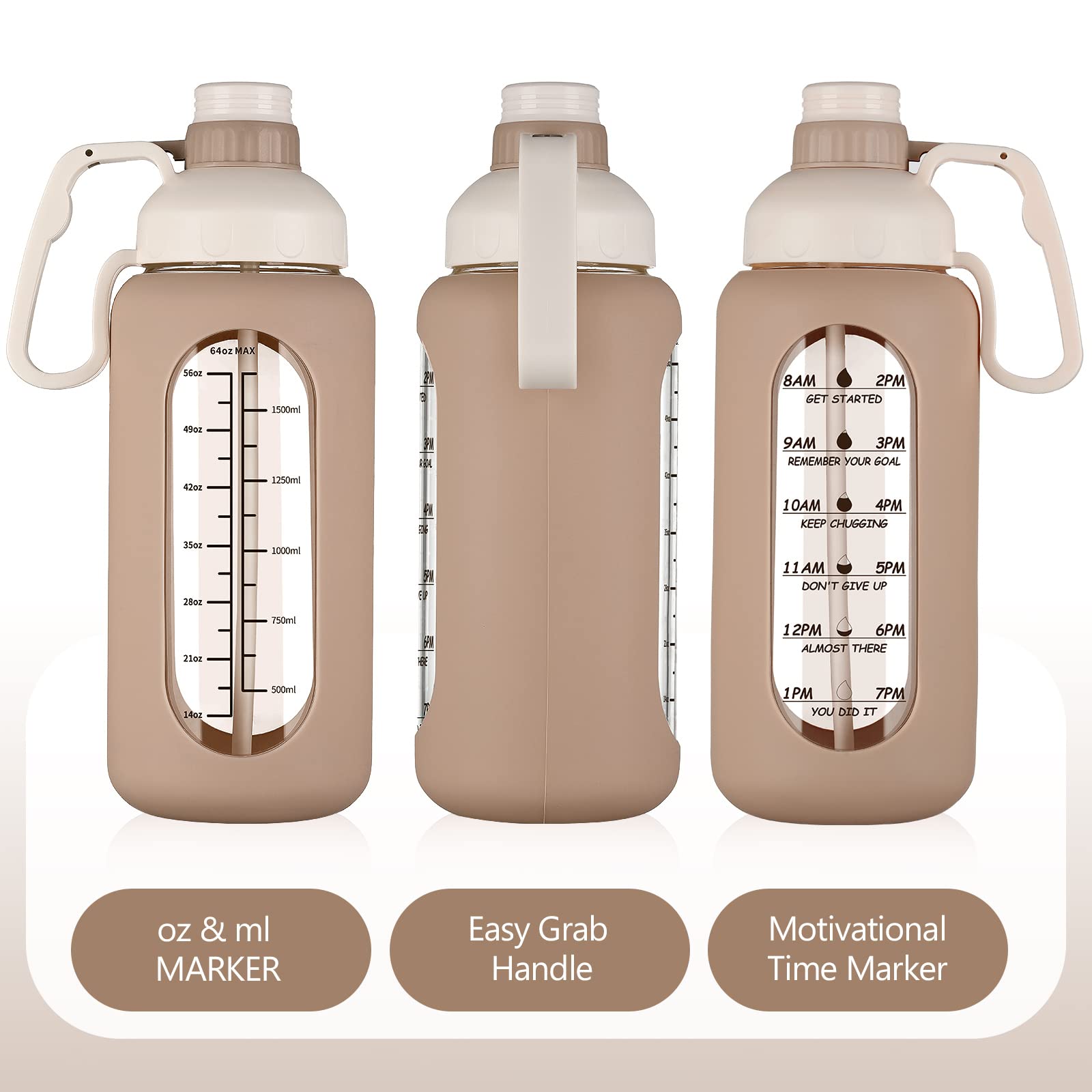 - Original Sports Water Bottles – 56oz Glass Water Bottle with Straw, Motivational Water Bottle with Silicone Sleeves and Handle,Leakproof BPA Free Wide Mouth Water Jug for Gym,Working,Outdoor,Amber by MUKOKO