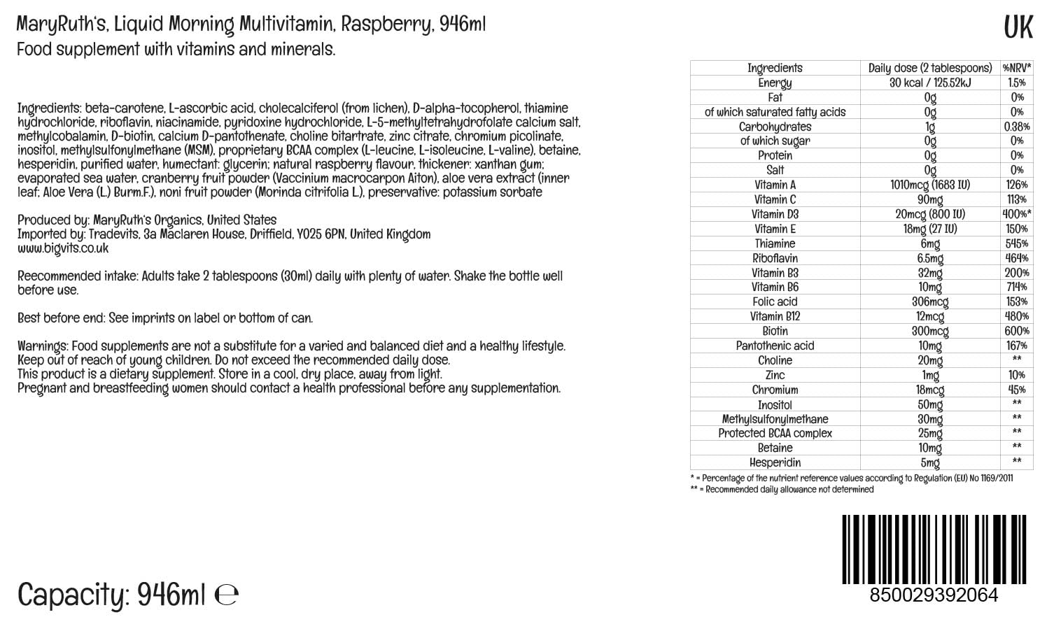 - Original Blended Vitamin & Mineral Supplements – Multivitamin Multimineral for Women Men & Kids by MaryRuth's, No Added Sugar, Vegan Liquid Vitamins for Adults & Kids, Mens, Womens Multivitamin, Energy & Beauty Booster, Non-GMO, 32 Fl Oz by MaryRuth Organics