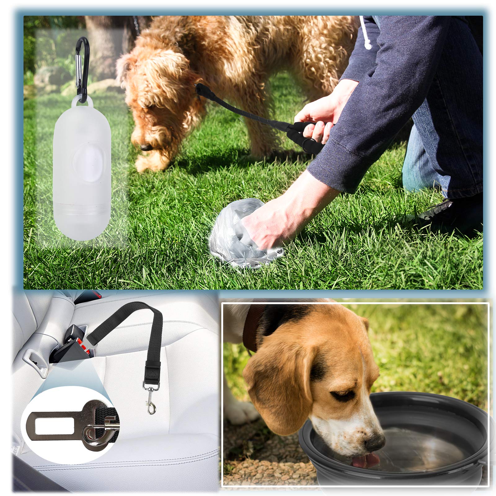 - COST-VALUABLE SET: Each pack has a 5-ft double-handle long dog leash, a 2-ft short leash and a poop bags dispenser & a folding pet bowl & a pet car seat belt leads.