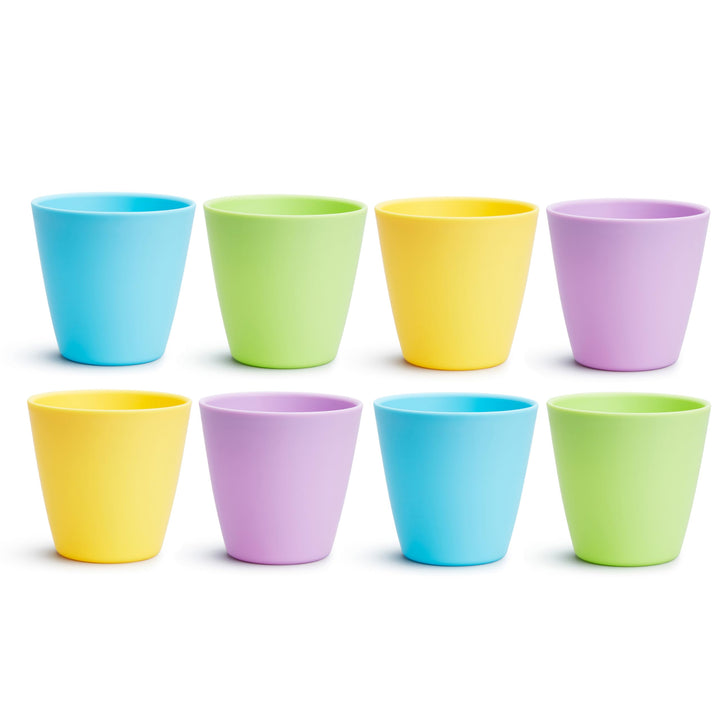 - Pack of 8 colorful, matching toddler cups