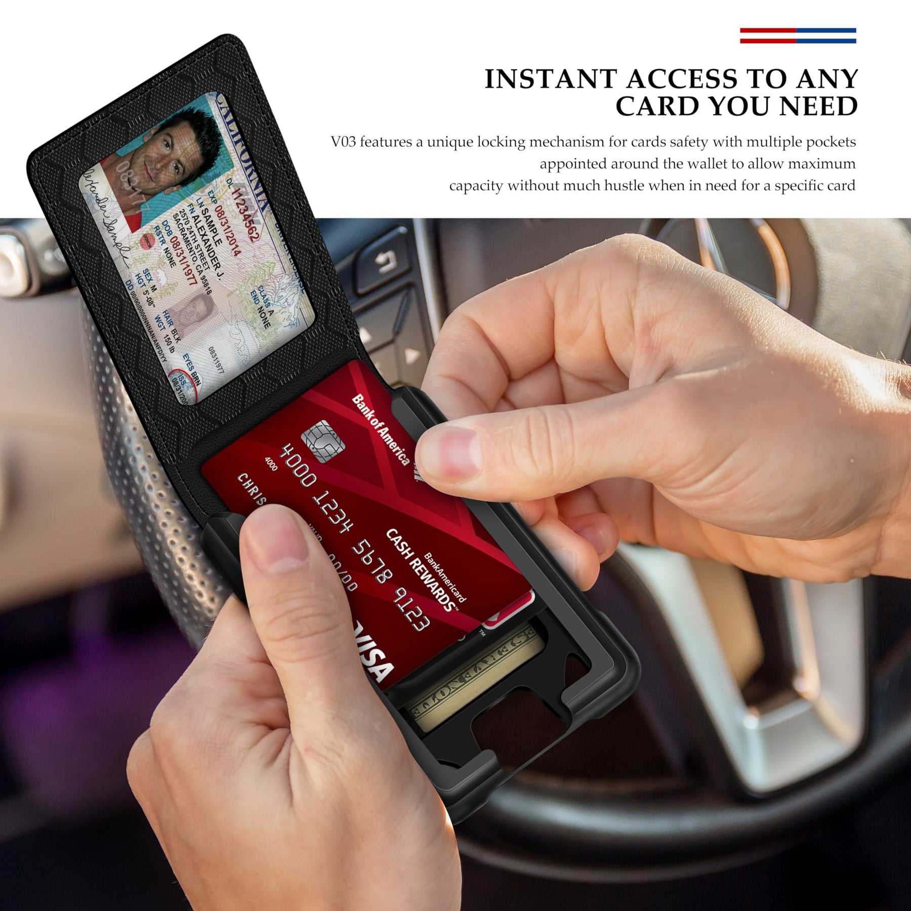 - SPRING LOCK DESIGN: This is only one MURADIN slim wallet of spring lock design now, pushing cards design make you take credit cards easily. Only 4.2*3*0.7 inches mens wallet offer space that holds most 12 cards and 1 to 5 cash.