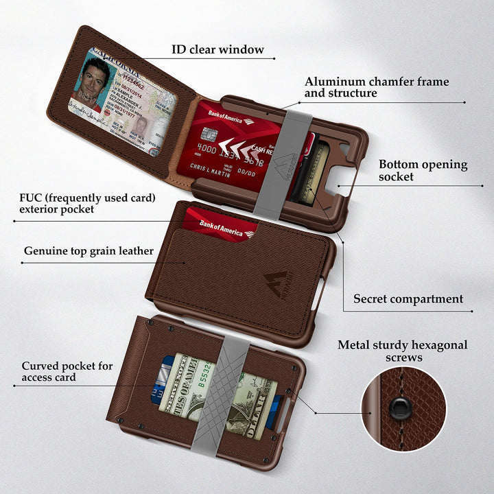 - RFID BLOCKING WALLET: You don't have to sacrifice the great looks of a leather credit card wallet for security. RFID blocking protection is given to the MURADIN minimalist wallet due to the metal frame, so you can use it safely as a travel wallet, cards holder, or front pocket wallet.