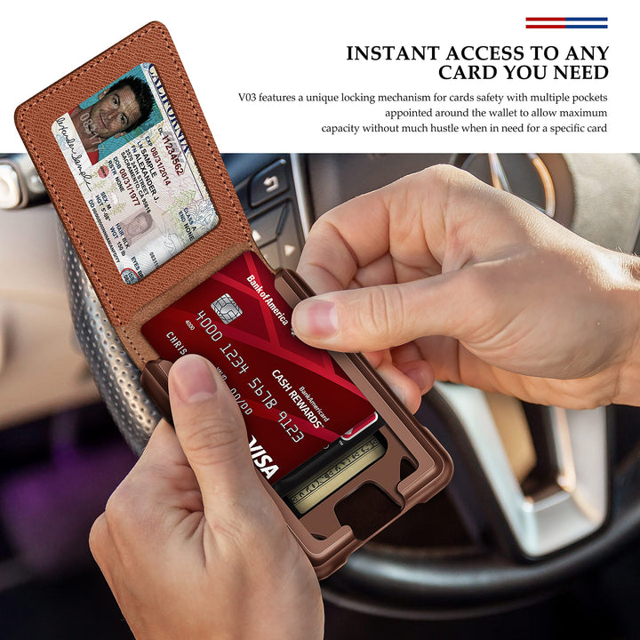 - SPRING LOCK DESIGN: This is only one MURADIN slim wallet of spring lock design now, pushing cards design make you take credit cards easily. Only 4.2*3*0.7 inches mens wallet offer space that holds most 12 cards and 1 to 5 cash.