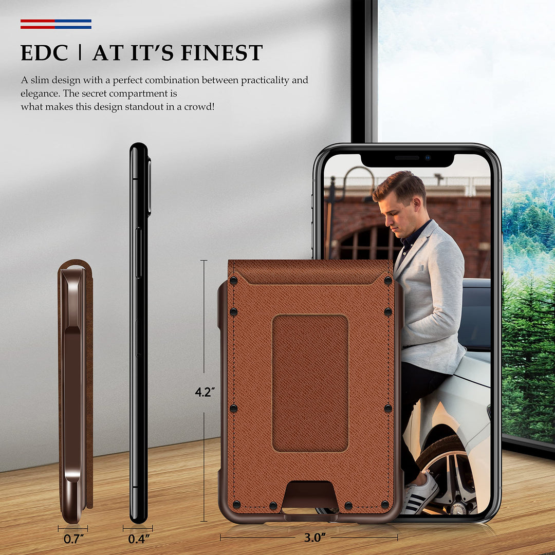 - RFID BLOCKING WALLET: You don't have to sacrifice the great looks of a leather credit card wallet for security. RFID blocking protection is given to the MURADIN minimalist wallet due to the metal frame, so you can use it safely as a travel wallet, cards holder, or front pocket wallet.