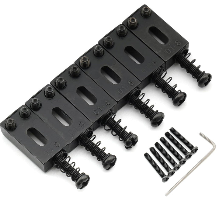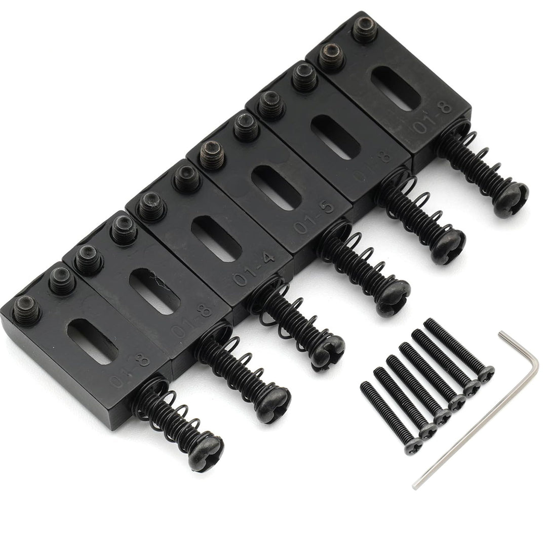 - Original Bridges & Bridge Parts – Pro 10.5mm Modern Style Zinc Alloy Bridge Saddles for Strat Tele Electric Guitar, Black (Set of 6) by Musiclily