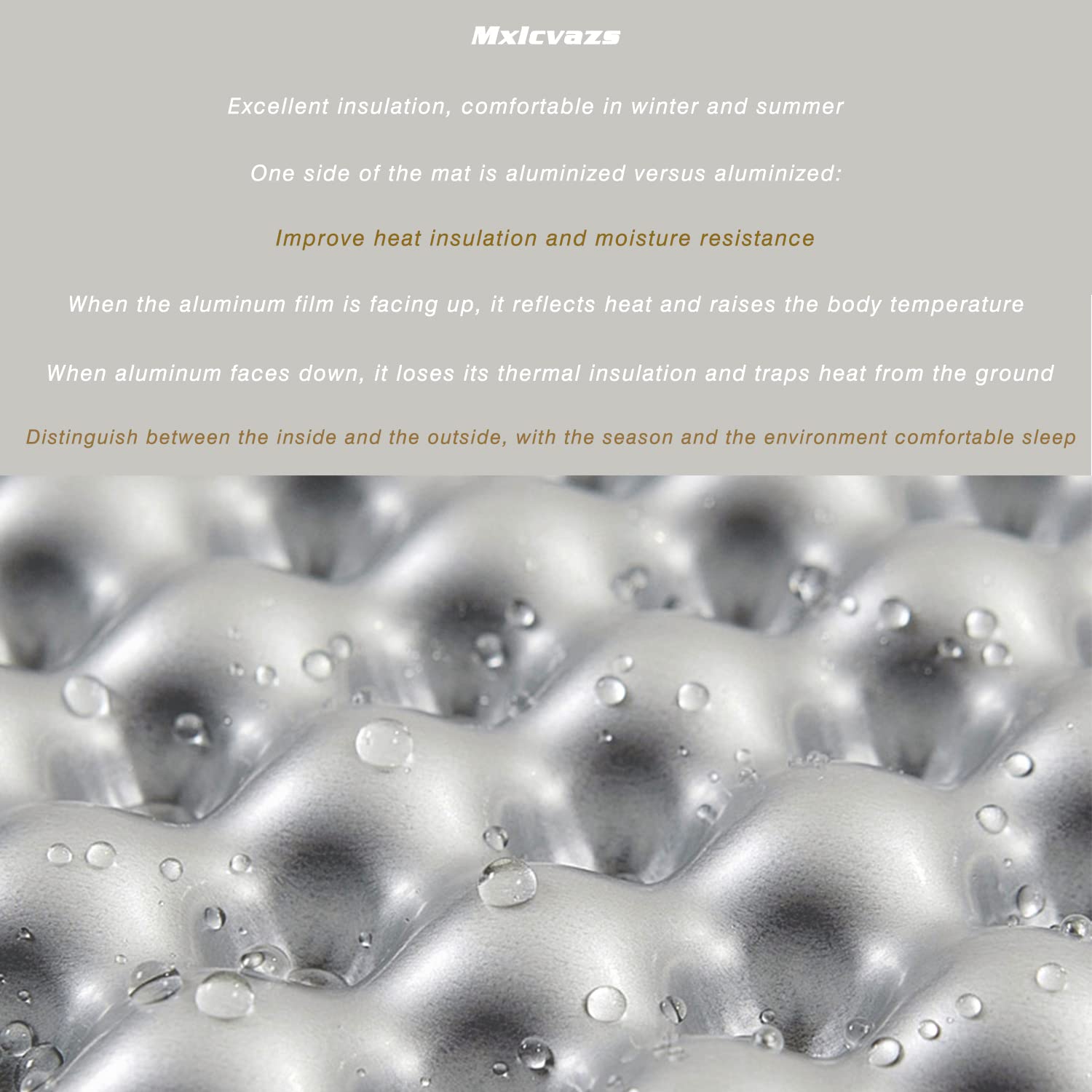 - EXTRA WARMTH:Aluminum film on the back not only insulates warmth but also keep moisture off. And easy to clean. The aluminum film will reflect body heat and keep the body warm on the cold ground.