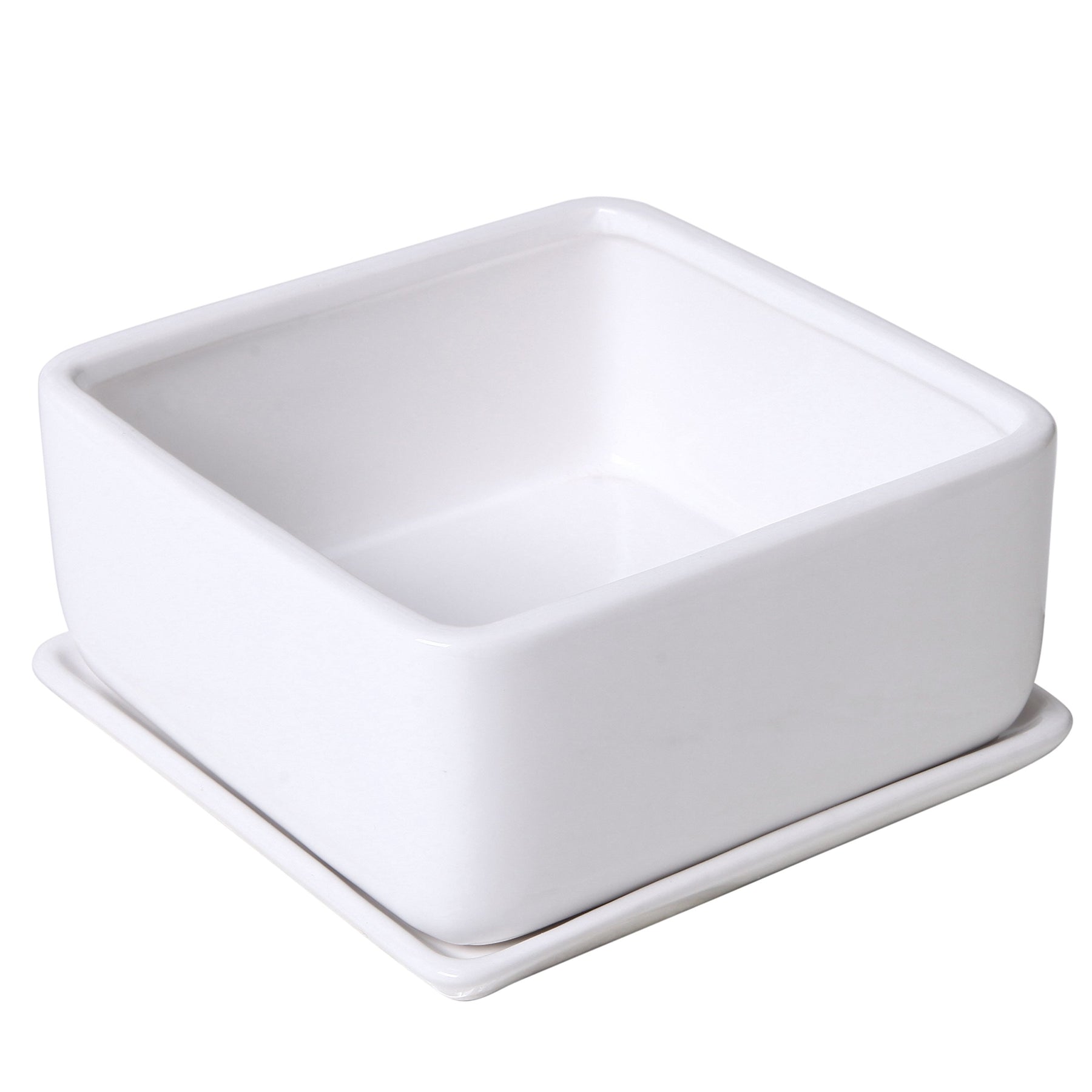 - Original Planters – Modern White Ceramic Square Indoor Small Planter, Flower Succulent Plant Pot with Drainage Hole and Removable Drip Tray by MyGift