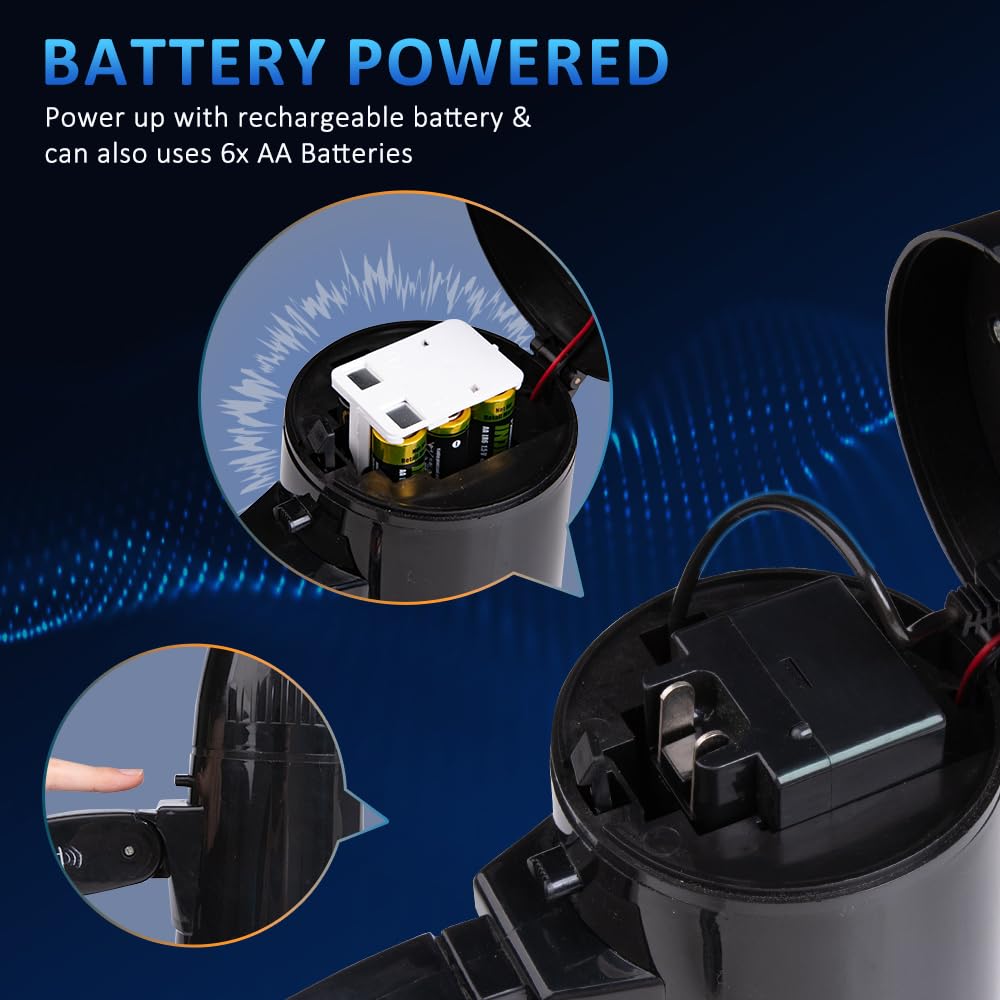 - WIRELESS AUDIO ON-THE-GOWith rechargeable battery operated design,this handy megaphone speaker is ideal for cheerleading, indoor outdoor sport, lifeguard, and crowd control. This Bullhorn Megaphone can also uses 6x AA Batteries (not included in the package). You can opt for standard non-rechargeable and rechargeable batteries – any of them will work just fine!