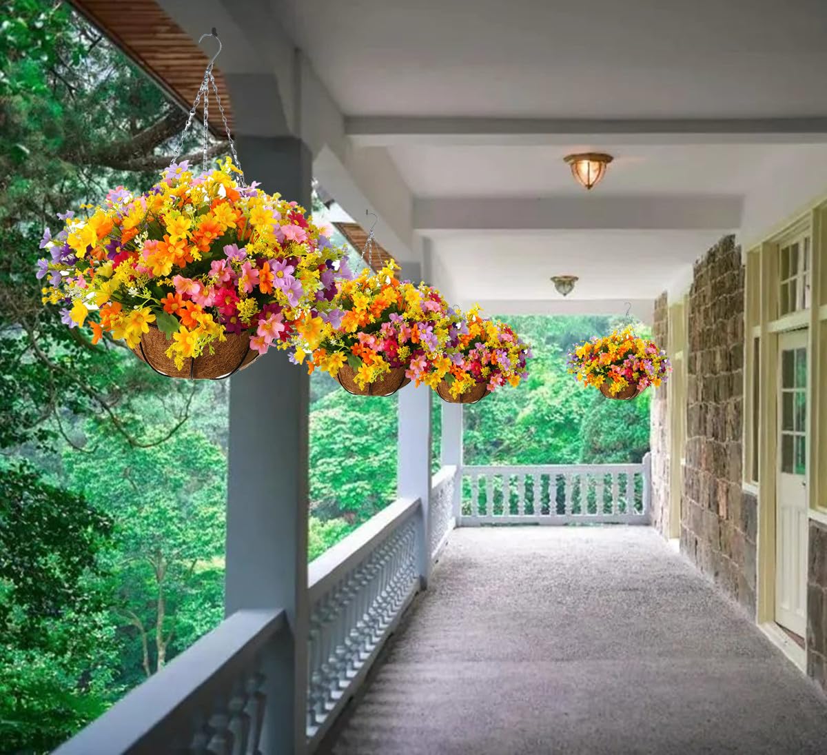 - Original Artificial Flowers – Flo Daisy Flower Artificial Hanging Plant Home Balcony Indoor Outdoor Decor Fake Flower Hanging Basket with Chain Flowerpot (Small Basket with Silk Flowers) by Mynse