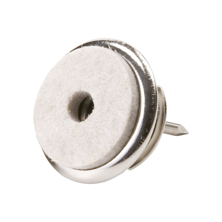 - 4-piece pack of 1-1/8 diameter round nail-on, white furniture glides