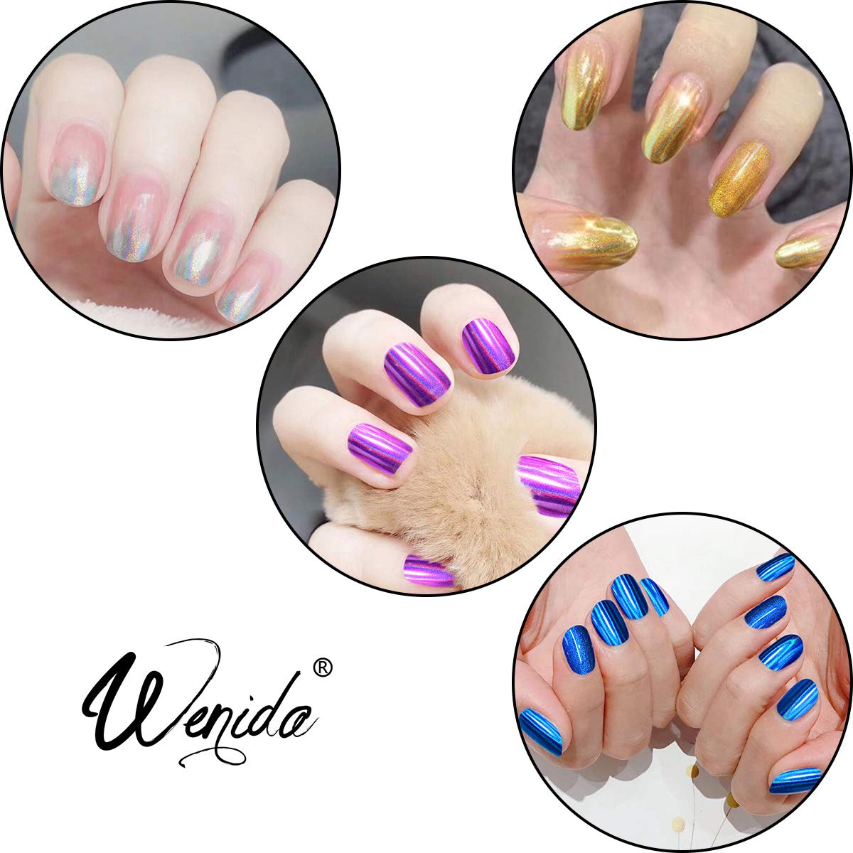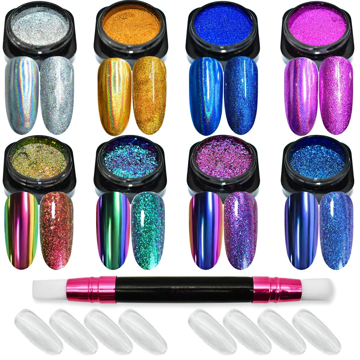 - Original Glitters – Nail Powder WENIDA 8 Jar Holographic Chameleon Chrome Mirror Laser Synthetic Resin Pigment with 8 False Nails and Silicone Nail Brush for Manicure Decoration by Wenida