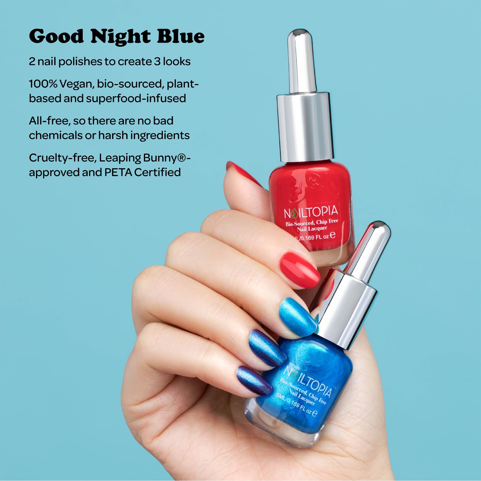 - Original Nail Polish – - 2 Bottles, 3 Looks Plant-Based Chip Free Nail Lacquer Kit - Non Toxic, Bio-Sourced, Long-Lasting, Strengthening Polish - Good Night Blue (Red With Blue Undertones And Blue Shimmer) - 2 Pc by Nailtopia