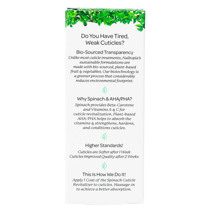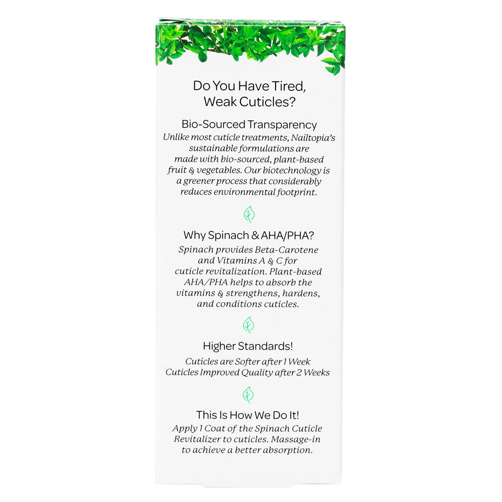 - Original Categories – - Cuticle Revitalizer - Invigorates Tired Cracked Cuticles - Plant-Based, Non Toxic, Bio-Sourced , Strengthening Superfood Treatment - Spinach Extract (Clear) - 0.41 oz by Nailtopia