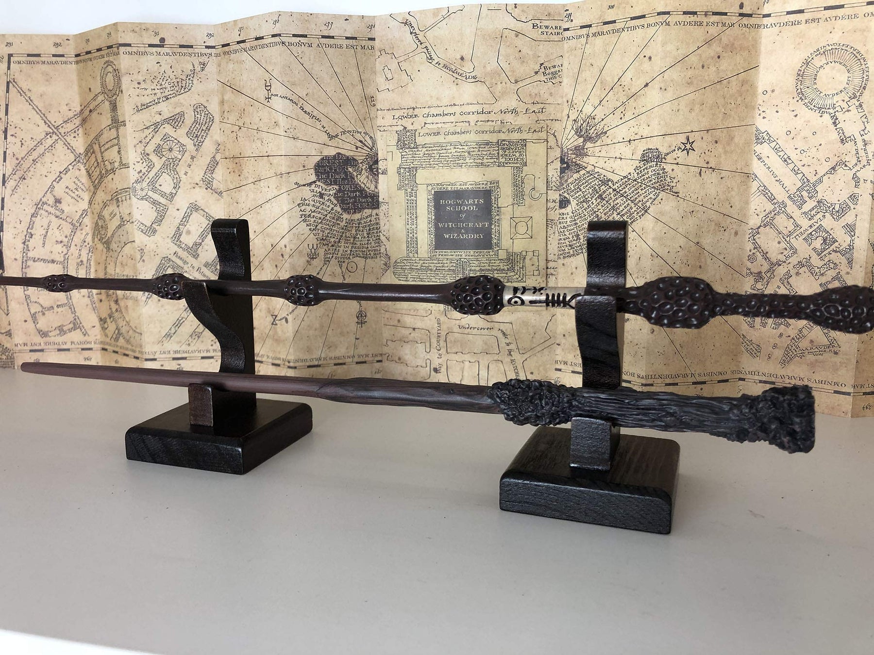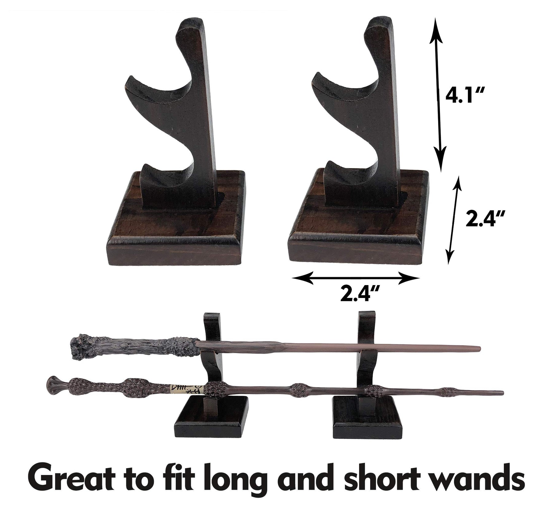 - SOLID & STURDY - Made of high quality solid wood, with big base, it's very stable to hold 2 wizard wands