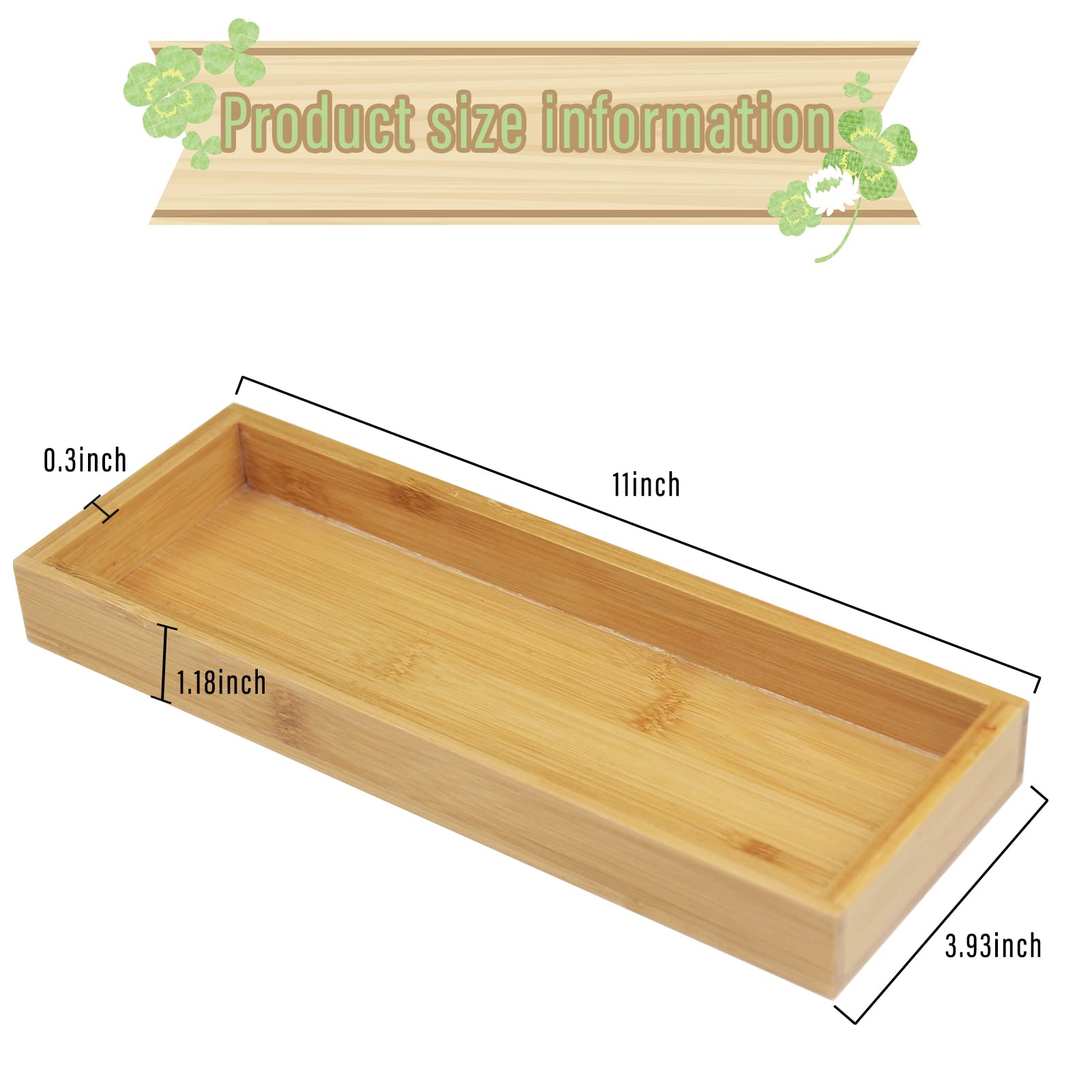 - Proper Size:The Wood Organizer Vanity Tray is about 4 x 11 inches,it is proper to be placed on your desk,bathroom,kitchen etc.The middle width of the tray is about 4.2 inches.