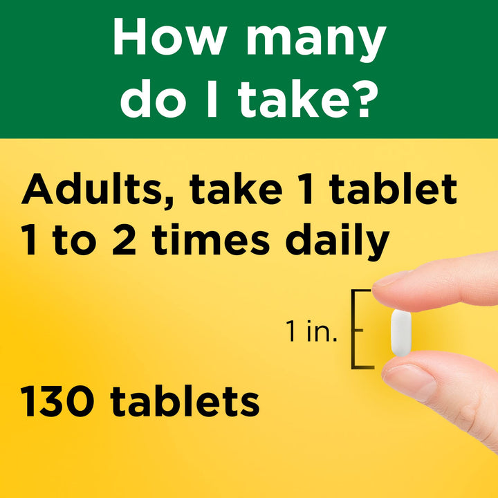 - Bone support Calcium supplement: contains one 130 count bottle of Nature Made Calcium 500 mg with Vitamin D3 Tablets