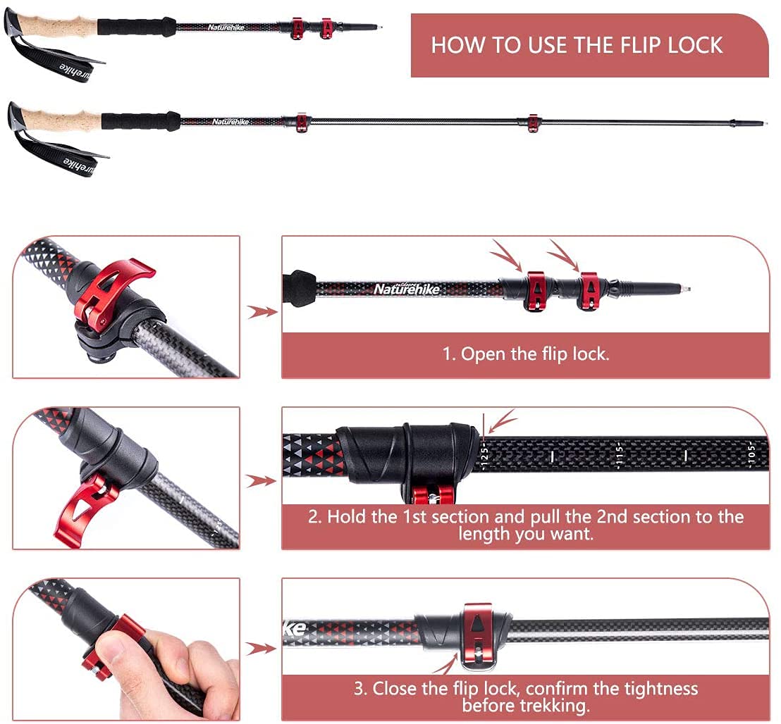 - Original Trekking Poles – Ultralight Trekking Poles, 100% 3K Carbon Fiber, Collapsible Hiking Poles, Telescopic Adjustable Walking Sticks for Backpacking Camping, Quick Locking, Carry Bag and Accessories Included by Naturehike