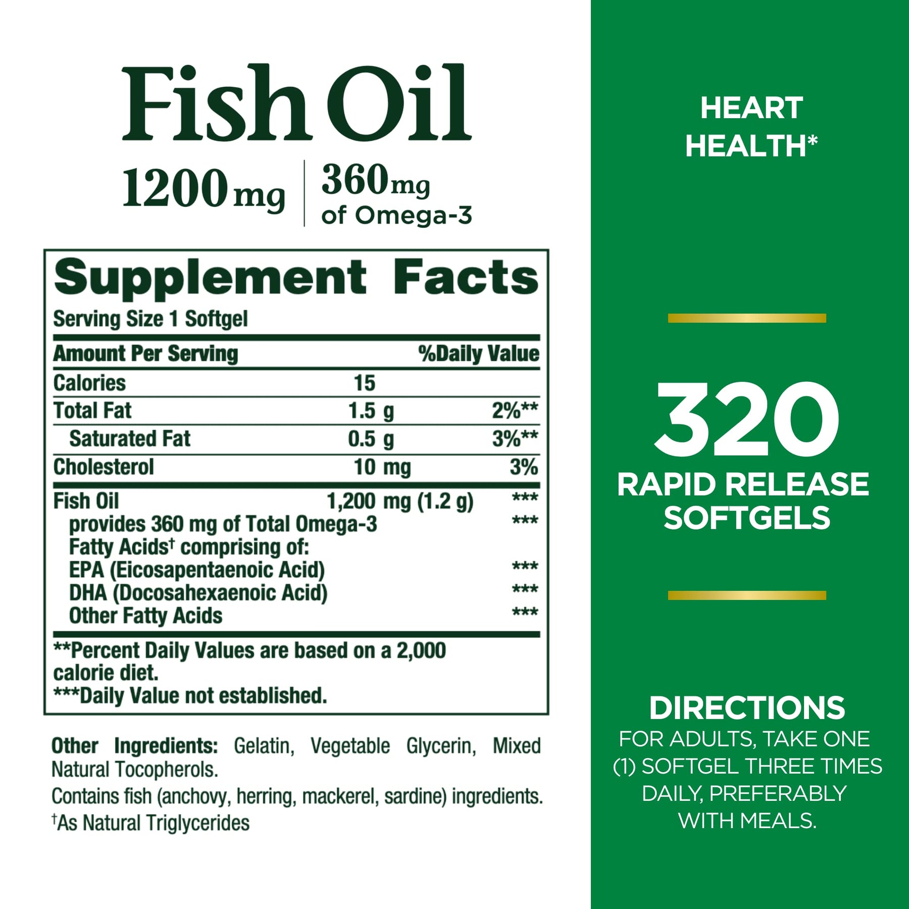 - Original Fish Oil – Nature's Bounty Fish Oil, Dietary Supplement, Omega 3, Supports Heart Health, 1200mg, Rapid Release Softgels, 320 Ct by Nature's Bounty