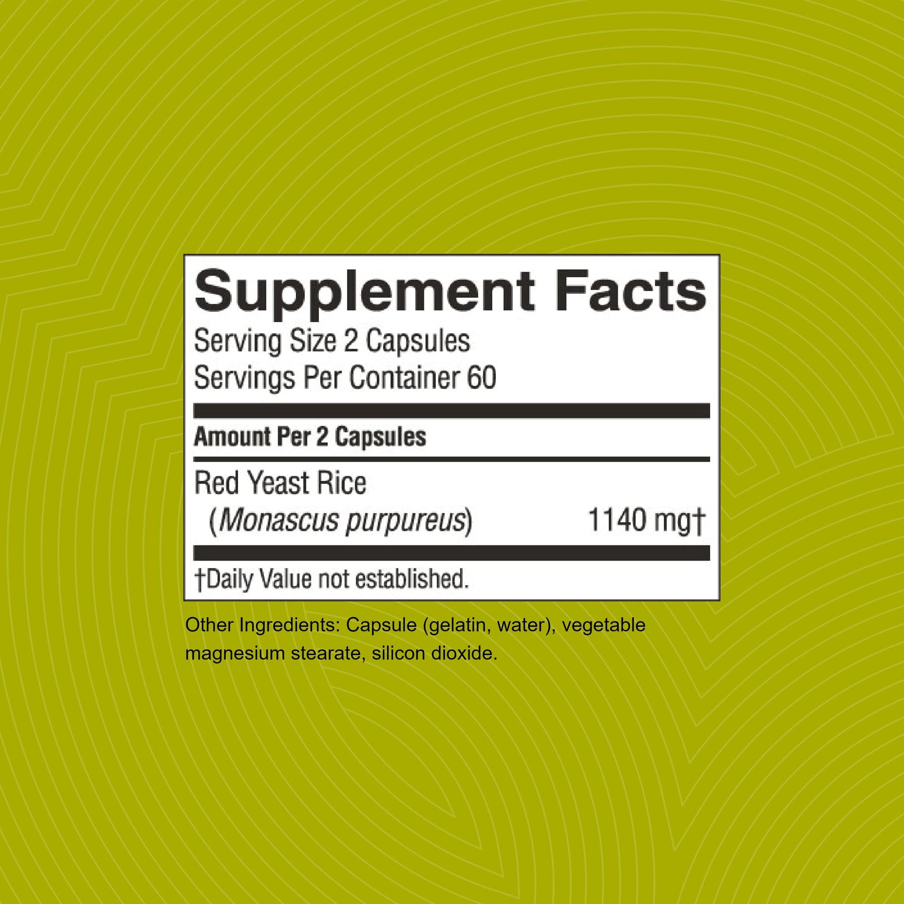 - SUPPLEMENT - Our natural formula contains 1140 mg of red yeast rice similar to other pills and supplements.