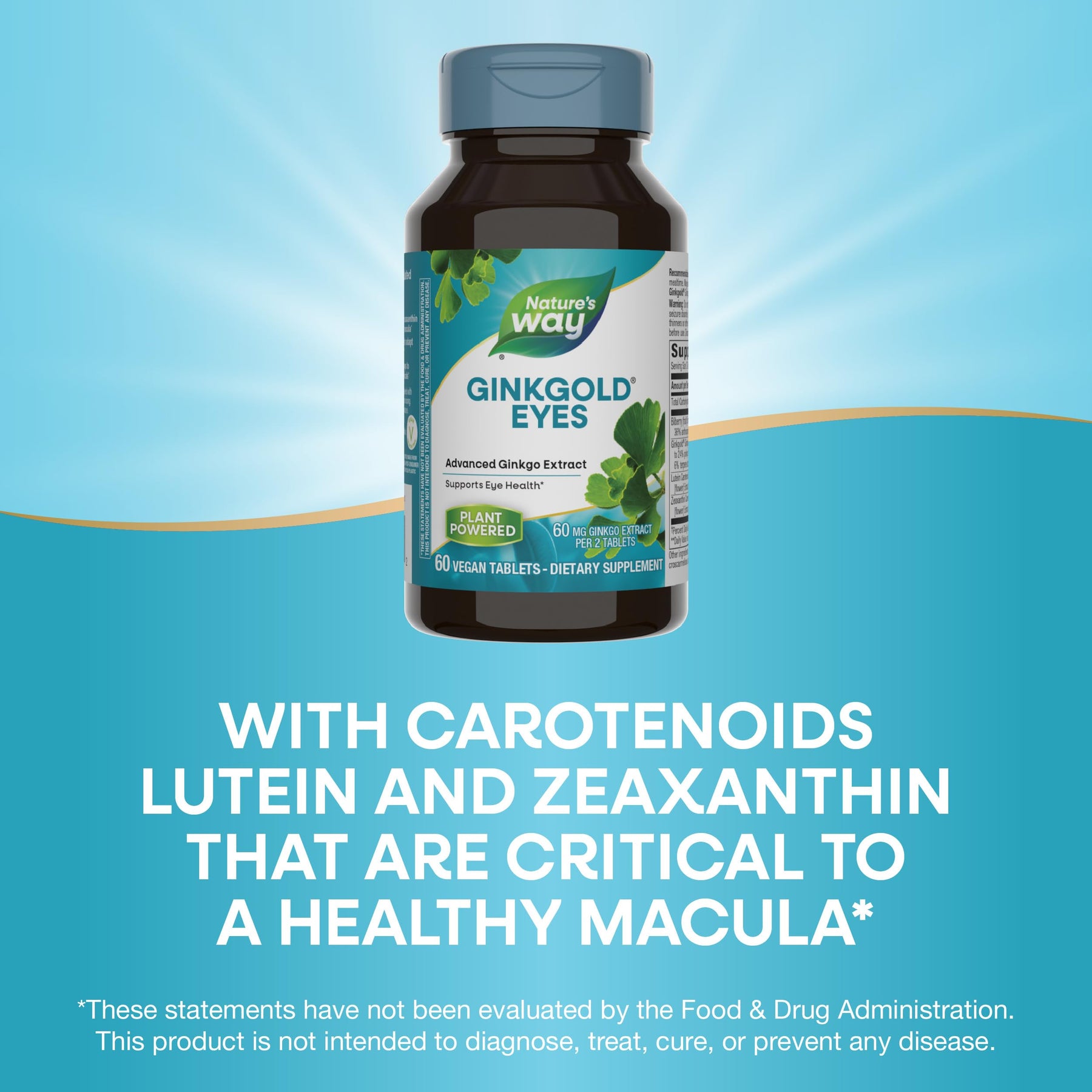 - Original Ginkgo Biloba – Nature's Way Ginkgold Eyes, Gingko Biloba Supplement for Adults, Supports Eye Health*, Gluten Free, 60mg Ginkgo Biloba Extract Per 2- Tablet Serving, 60 Tablets (Packaging May Vary) by Nature's Way