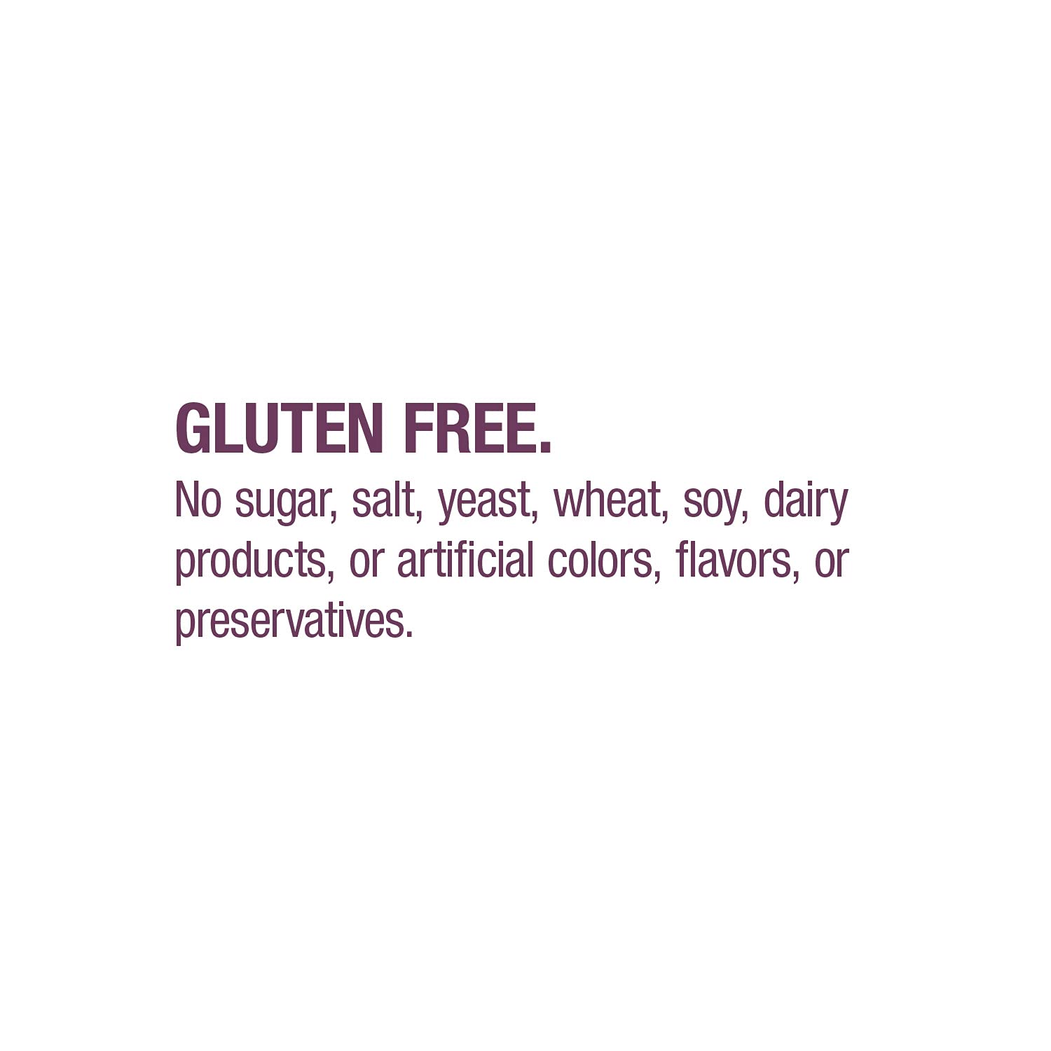 - Gluten-free and vegan. No salt, yeast-derived ingredients, wheat, corn, soy, dairy, or artificial colors, flavors, or preservatives.