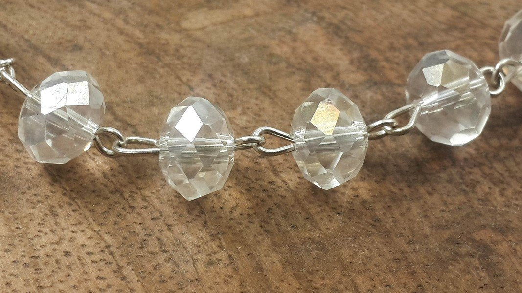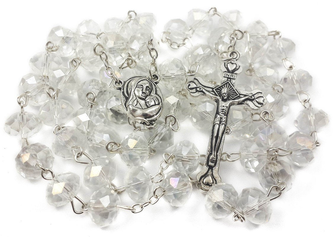 - Clear crystallized beads long beaded necklace classic communion rosary with silver 1.6 cross crucifix.