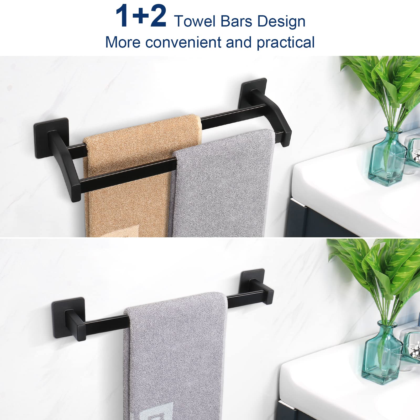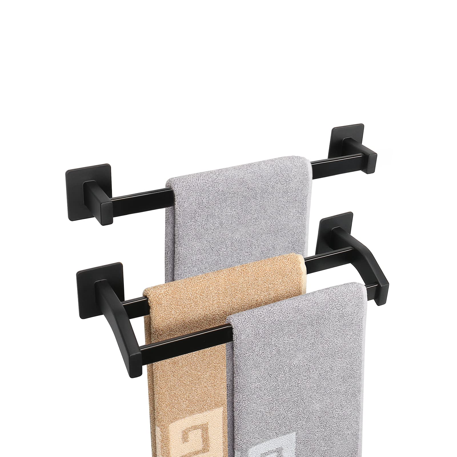 - Original Towel Bars – 2 Pieces Bathroom Hardware Set, Premium Space Aluminum Single Towel Bar+ Double Towel Holder Rod, Glue Installation Towel Racks No Drill Bathroom Accessories (12 Inch, Matte Black) by NearMoon