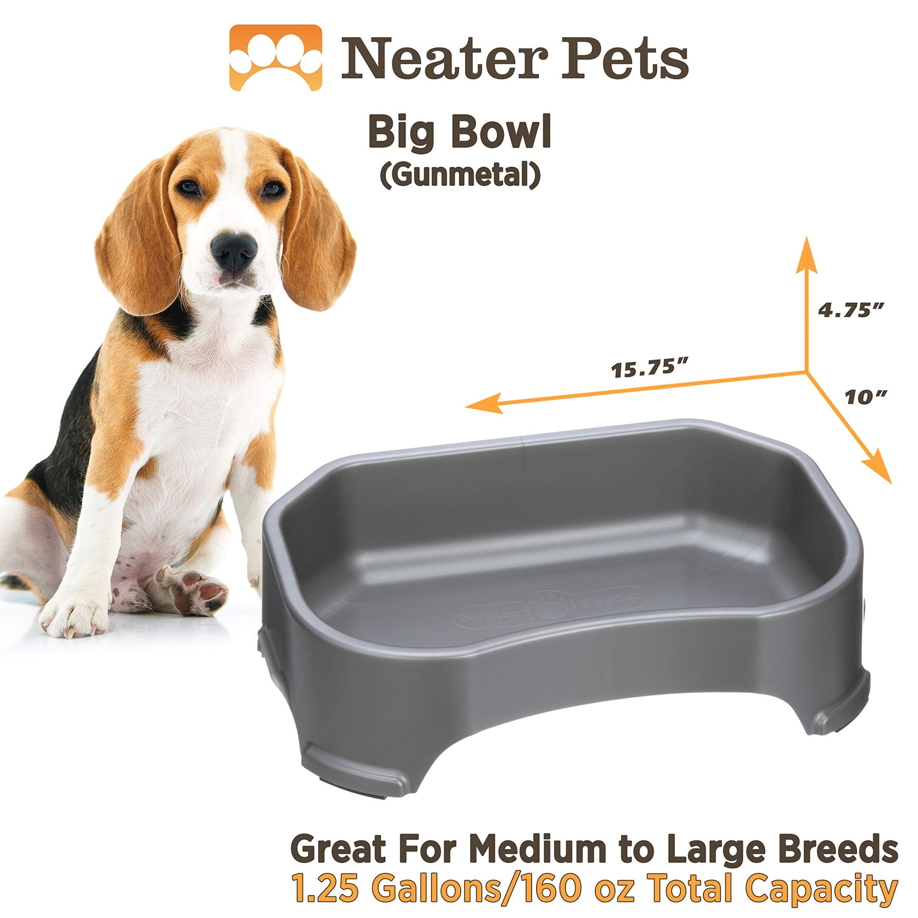 - Original Basic Bowls – Big Bowl - Extra Large Water Bowl for Dogs (1.25 Gallon Capacity, 160 oz) - Huge Over Size Pet Bowl - Gunmetal Grey by Neater Pet Brands