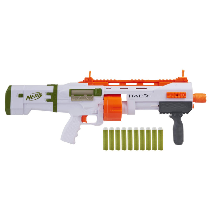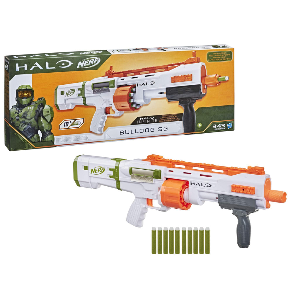 - Original Foam Blasters – Halo Bulldog SG Dart Blaster - Pump-Action, Rotating 10-Dart Drum, Tactical Rails, 10 Official Elite Darts, Skin Unlock Code by Nerf