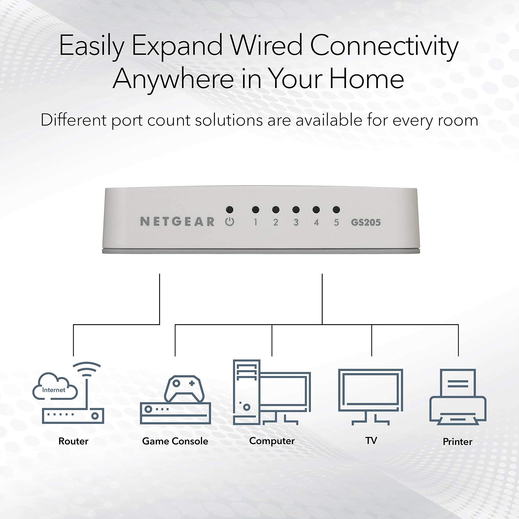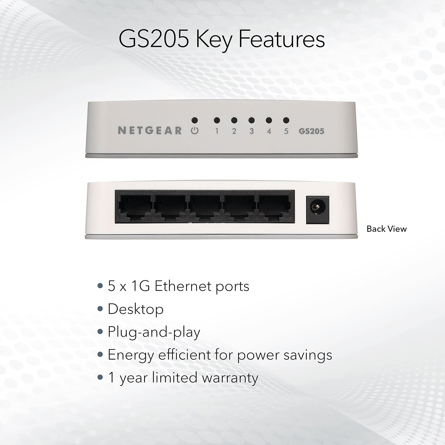 - Original Switches – Netgear GS205-100PAS 5-Port Gigabit Ethernet Unmanaged Switch, Desktop, 10/100/1000Mbps (GS205) by NETGEAR