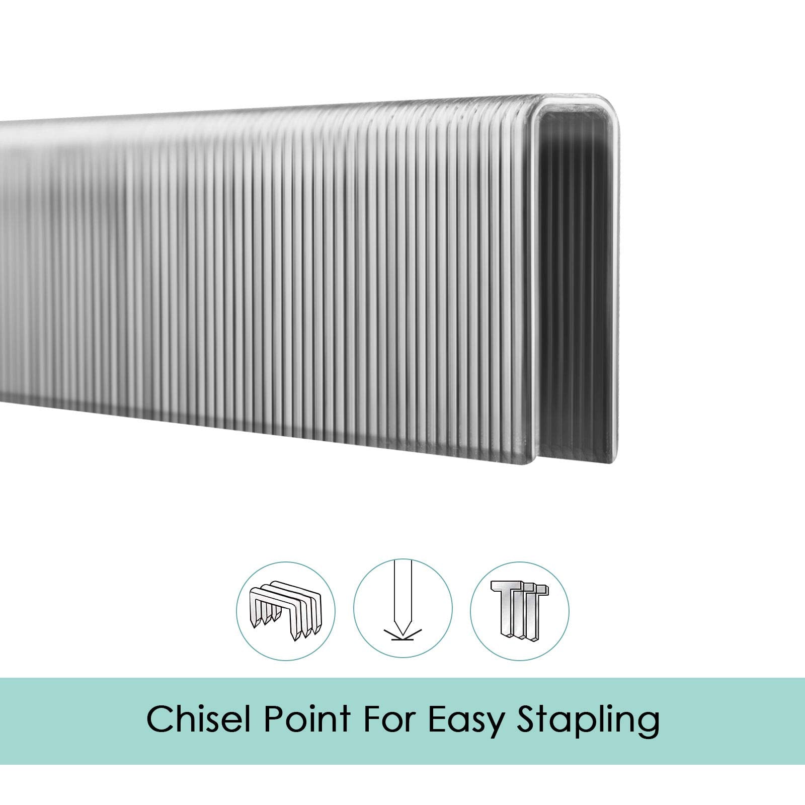 - [Sharp Chisel Point] --- Designed with sharp chisel points that fewer jams and buckles. Perfect performance means easily penetrate and precision stapling.