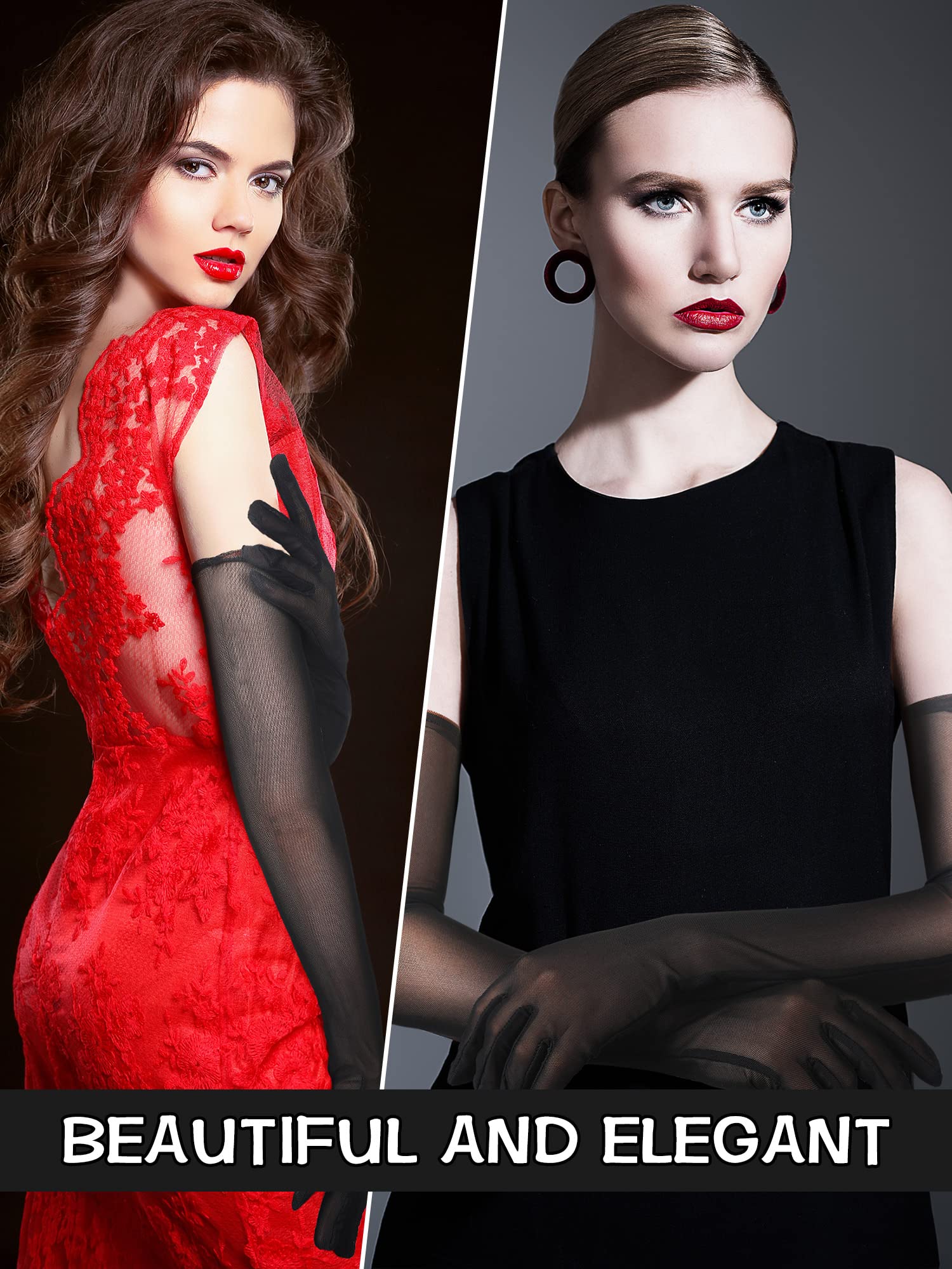 - Extra Long Sheer Arm Gloves: sheer gloves measure about 56 cm/ 22 inches in length, from the finger to the end of the glove, the enough length fits for the elbow of most women and girls, nice choice for them