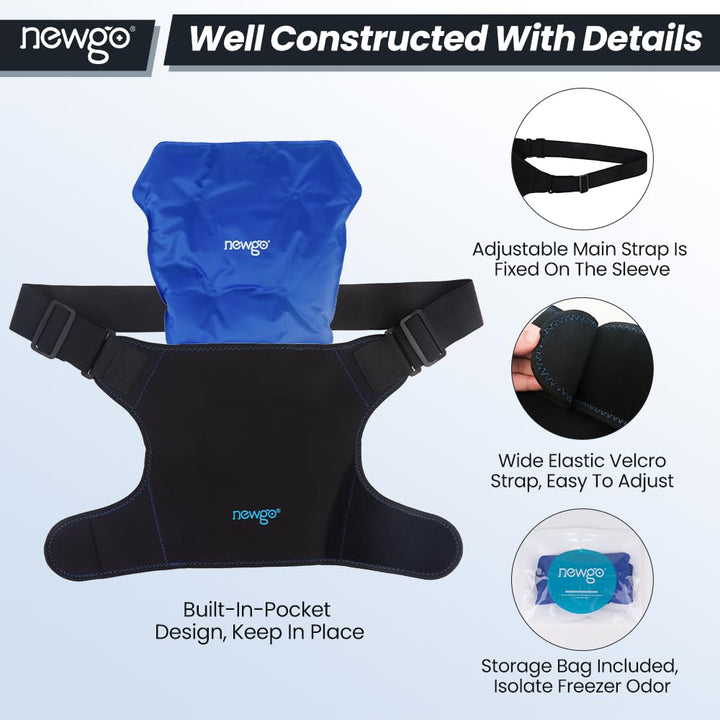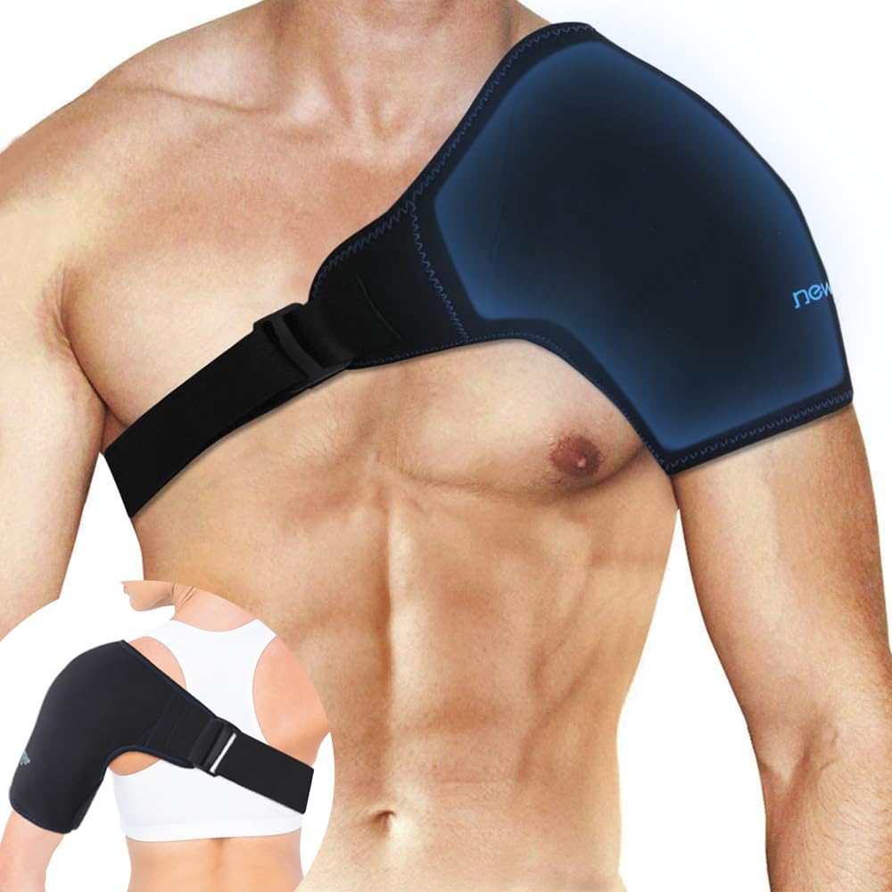 - Targeted Shoulder Pain Relief - NEWGO shoulder ice pack is FSA HSA Eligible. Whether you're dealing with chronic shoulder pain or recovering from shoulder surgery, this shoulder ice wrap a reliable and effective pain-relieving solution from rotator cuff surgery, shoulder sprains and strains, bursitis, muscle spasms, tendonitis. Ideal for shoulder surgery patients, white-collar, athletes/fitness enthusiasts,seniors.