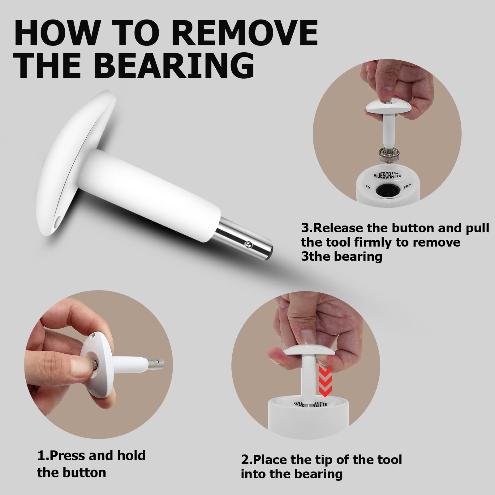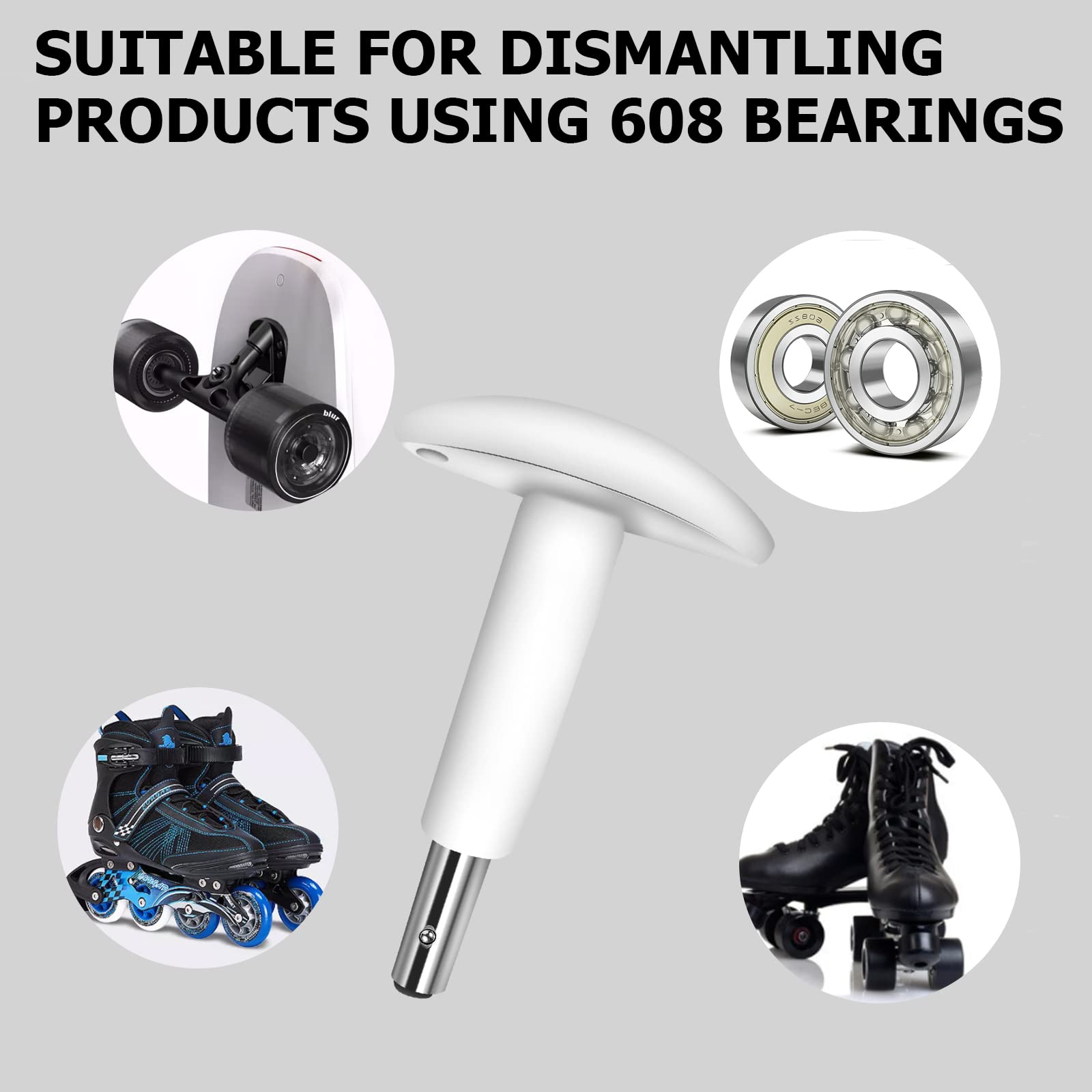 - Upgraded Skateboard ToolT tool is a skateboard roller bearing removal special tool, which is very convenient and efficient tool for disassembling 608 bearings. The skate bearings can be removed incredible speed just a few seconds.
