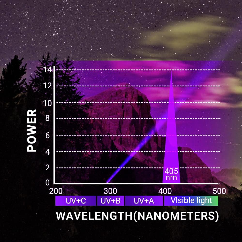 - Pocket-Sized DesignWeighing just 120grams with hand strap, the compact body 405nm uv light is easy to carry and store.