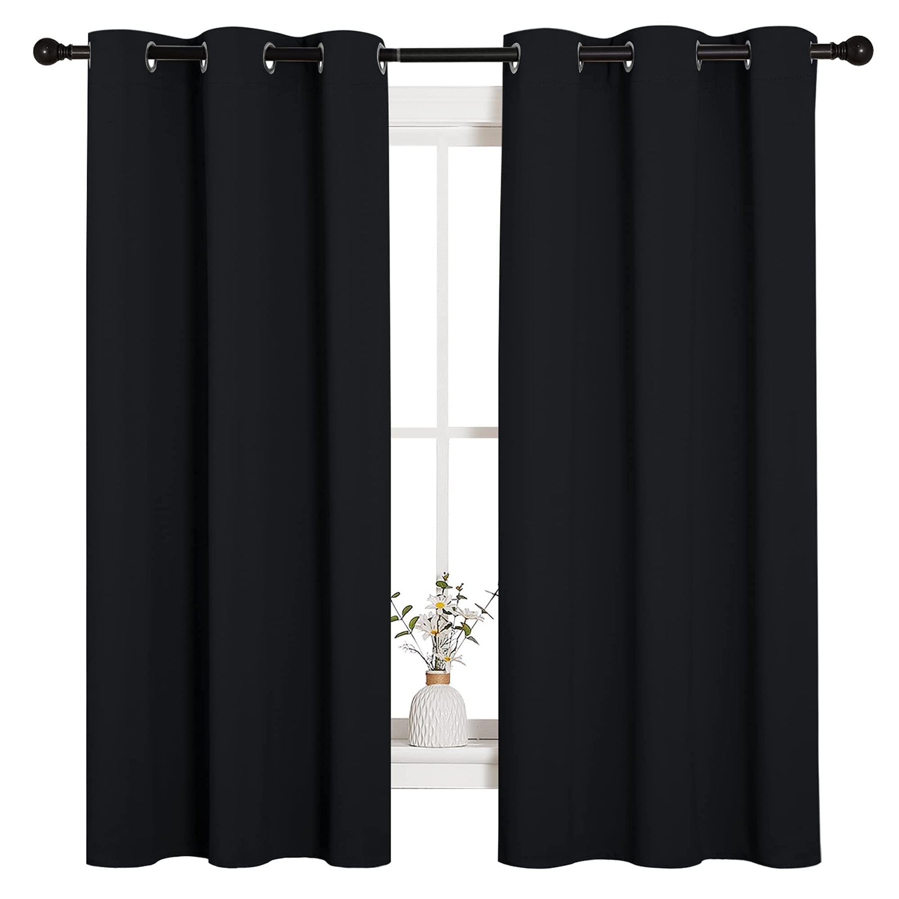 - Original Panels – Halloween Pitch Black Solid Thermal Insulated Grommet Blackout Curtains/Drapes for Bedroom Window (2 Panels, 42 inches Wide by 63 inches Long, Black) by NICETOWN