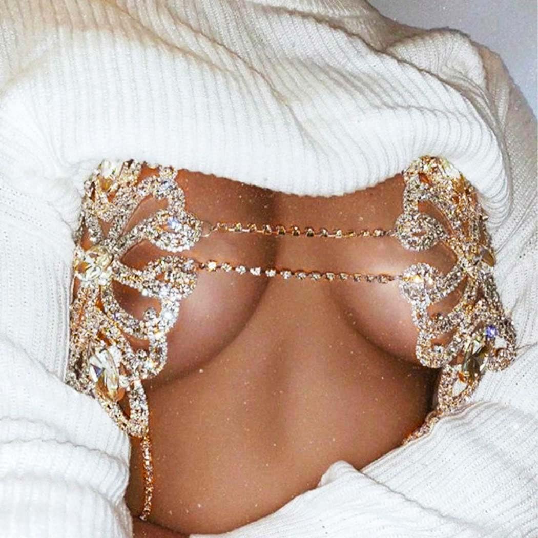 - Original Body Chains – Rhinestone Body Chain Jewelry Sparkly Crystal Bra Bikini Chains Summer Beach Body Chains for Women (Gold) by Nicute