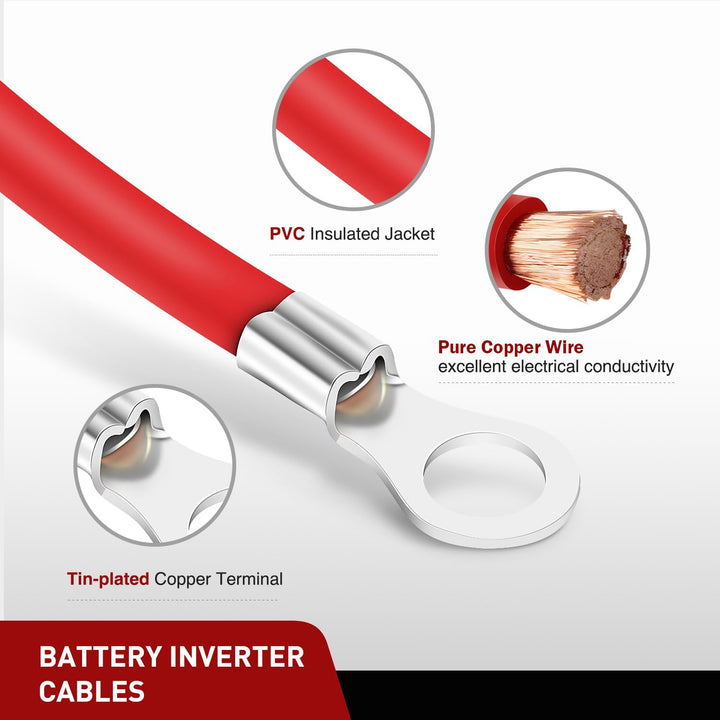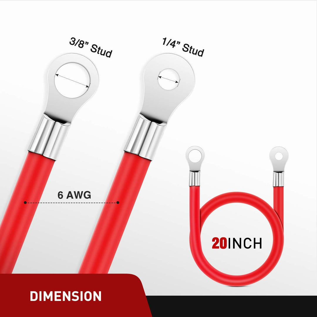 - Package Includes: 20-inch 6AWG battery inverter cables contain a set of positive(red) and negative(black) battery cables