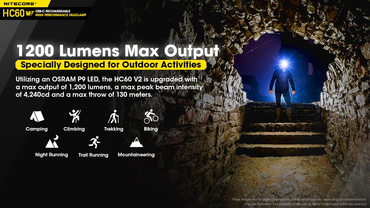 - Original Headlamps – HC60 v2 Headlamp, 1200 Lumen LED USB-C Rechargeable with LumenTac Organizer (Cool White) by Nitecore