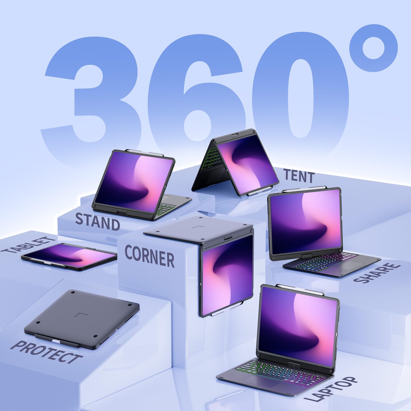 - 7 Use Modes & 360°Rotation12.9 inch iPad Pro Case with Keyboard is made of durable and environmentally friendly ABS material, which provides better protection for your iPad Pro 12.9 inch. iPad Pro 12.9 case with keyboard can rotate 360° and fold 180°, compared to other iPad Pro 12.9 keyboards, you can adjust the angle according to your usage needs. Whether you are traveling, at home, in the office, or out and about, it can provide you with a convenient typing experience.