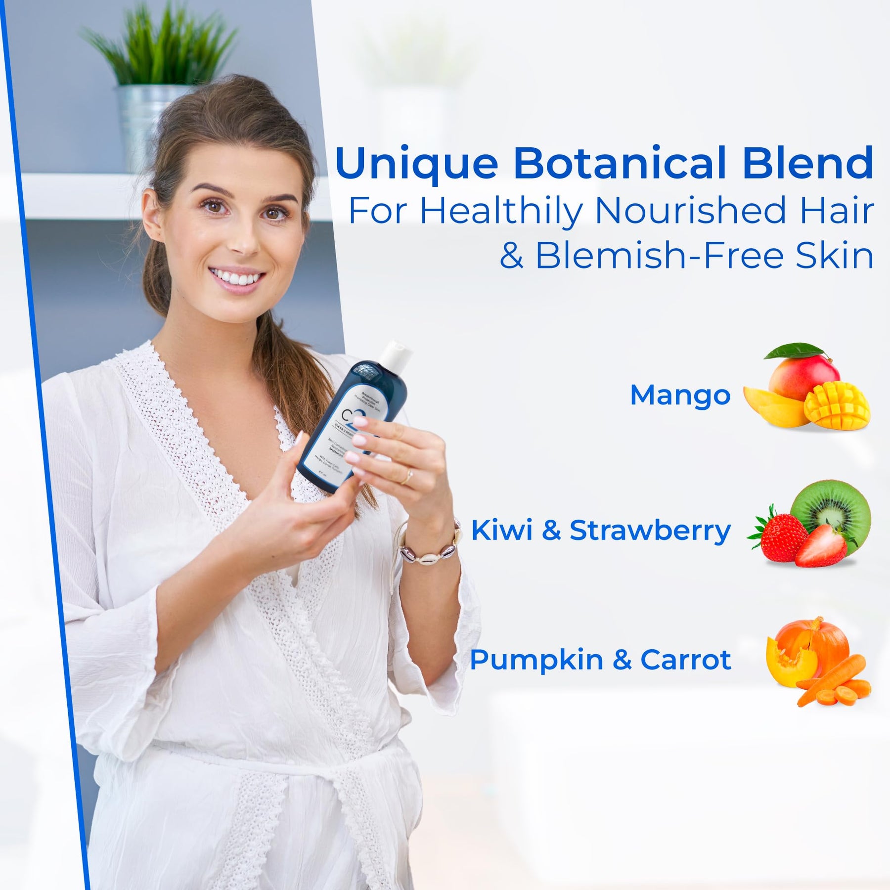 | product benefit | Nourishing formula promotes clear skin and healthy hair; expertly formulated by a paramedical esthetician; unique botanical blend for radiant hair; paraben-free formula for whole-body well-being. |