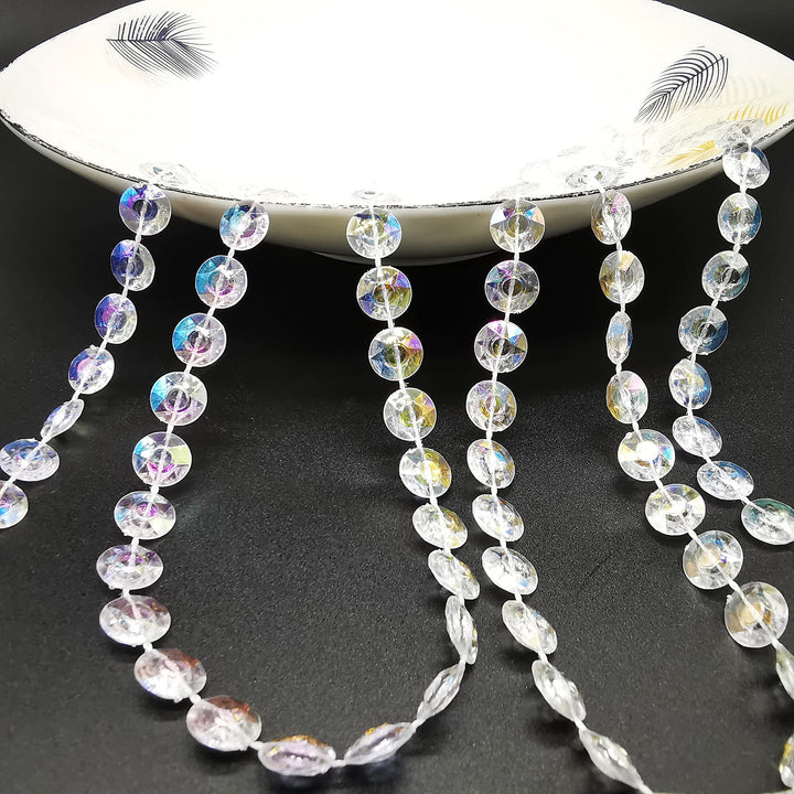 - Iridescent Color : This crystal string garland features a diamond Iridescent color, pretty nice DIY accessories, bling to your decorations.