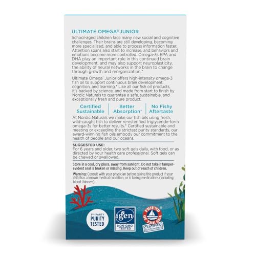 - WHY OMEGA-3S - The omega-3s in Ultimate Omega Jr. benefit brain health, mood, and learning, as well as normal cognitive function and social development.
