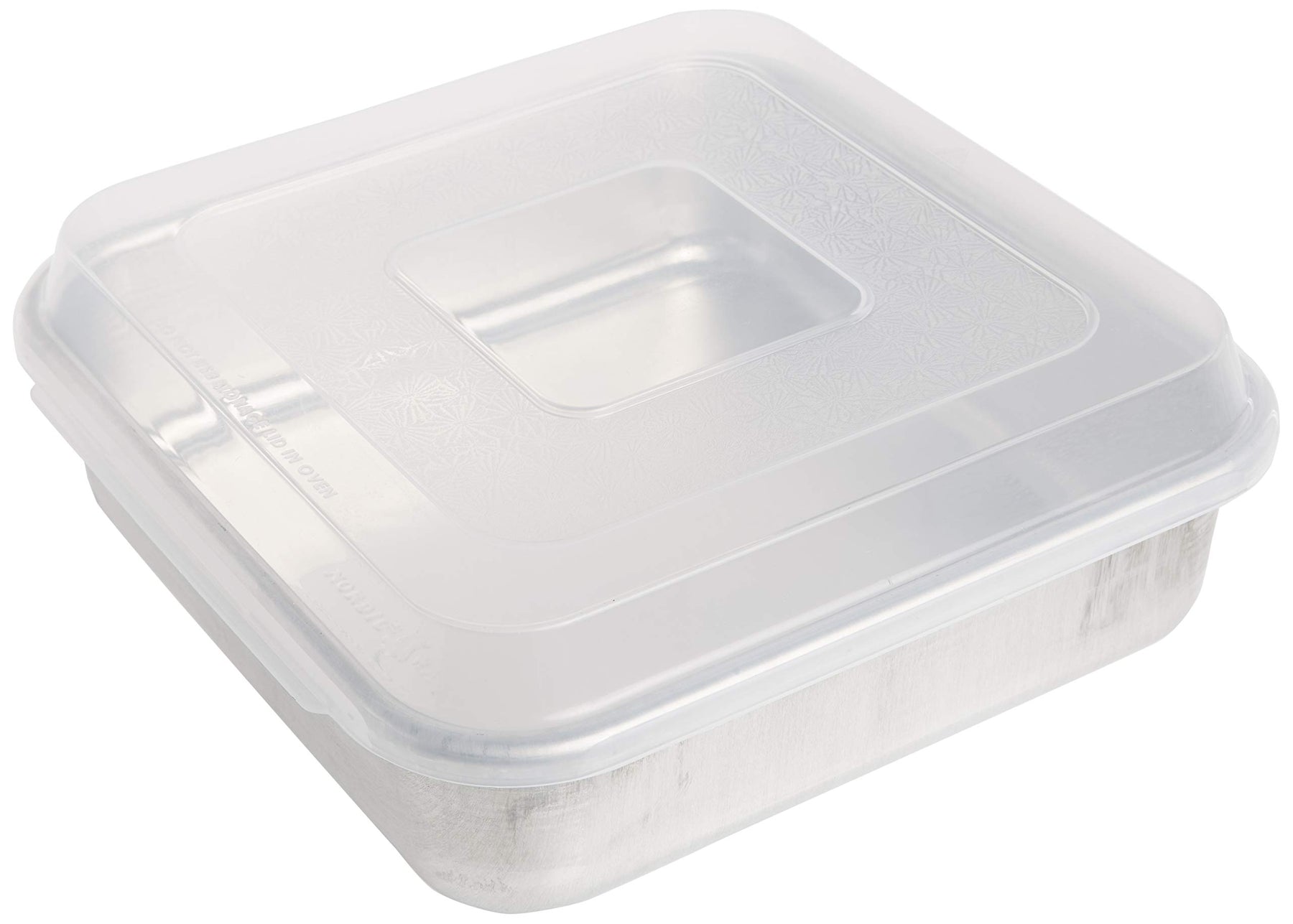 - Whether you're baking something for yourself at home or need to take it with you to go; this 9-inch square cake pan with its lid will do the job beautifully