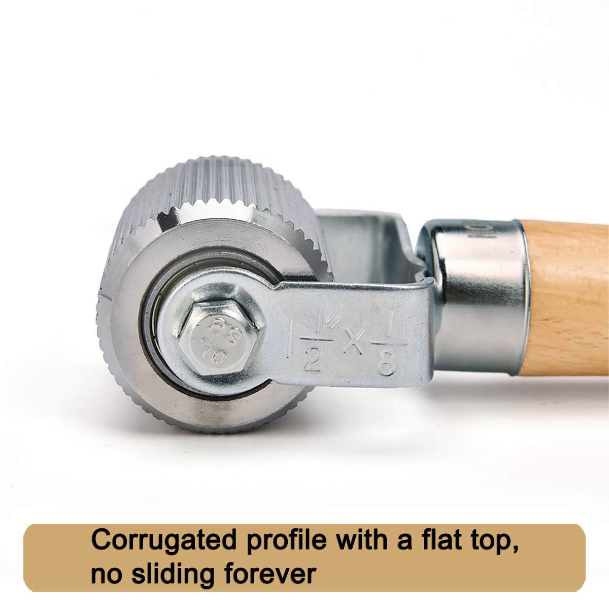 - [Efficient Corrugated Wheel]: This car sound deadener roller has slight grooves on the wheel to prevent sliding or slipping. The wheel has fine ridges with flat tops, NOT sharp at all. What’s more, the corrugated wheel can leave ripples imprint on some sound deadening material surface. Thus you will neither miss anywhere nor roll the same place twice!