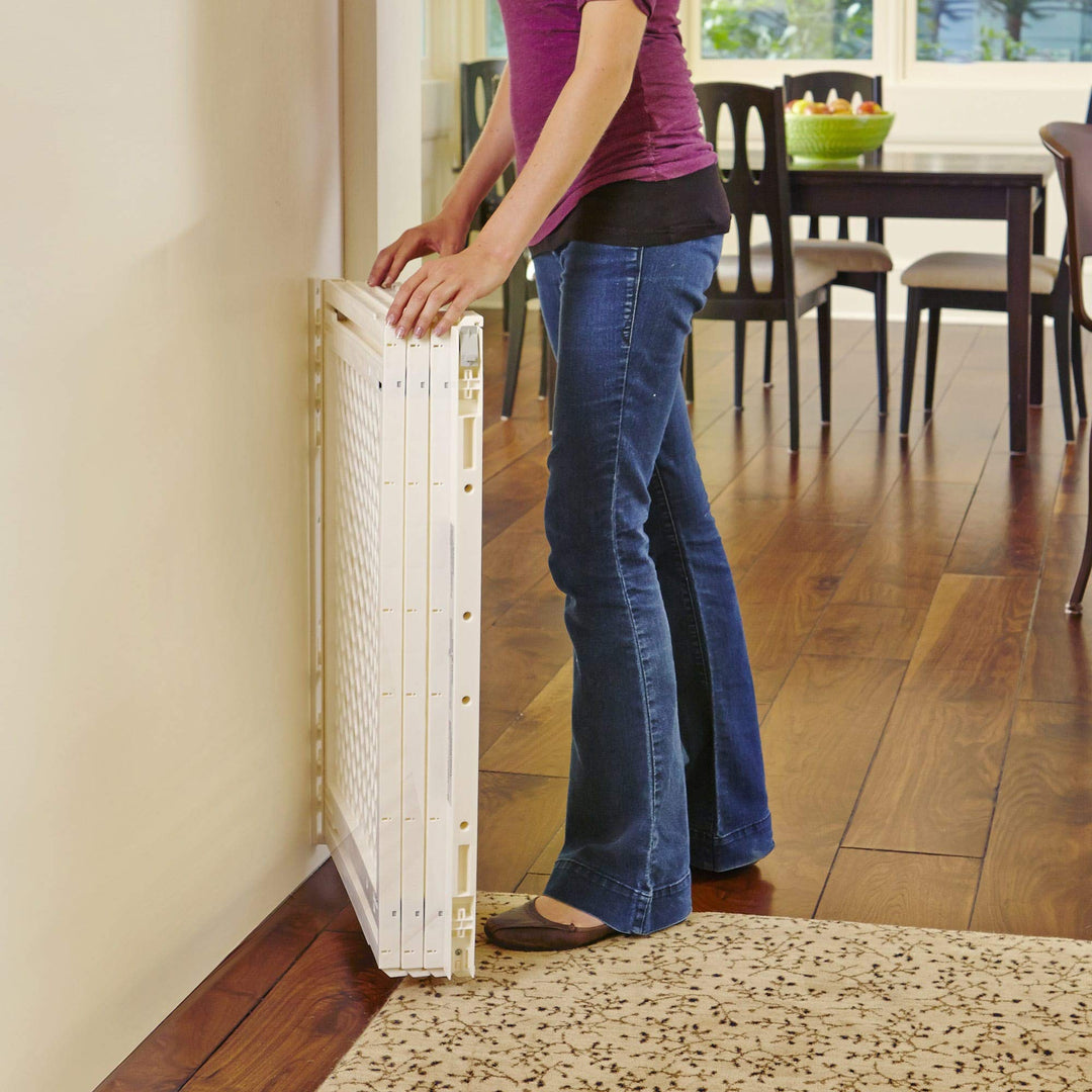 - [Amazing Value & Stylish & Dependable]: Comes in a classic ivory finish and fits seamlessly in any of your standard to extra-wide openings. The American-made heavy duty dog gate is made of durable plastic and hard to climb!