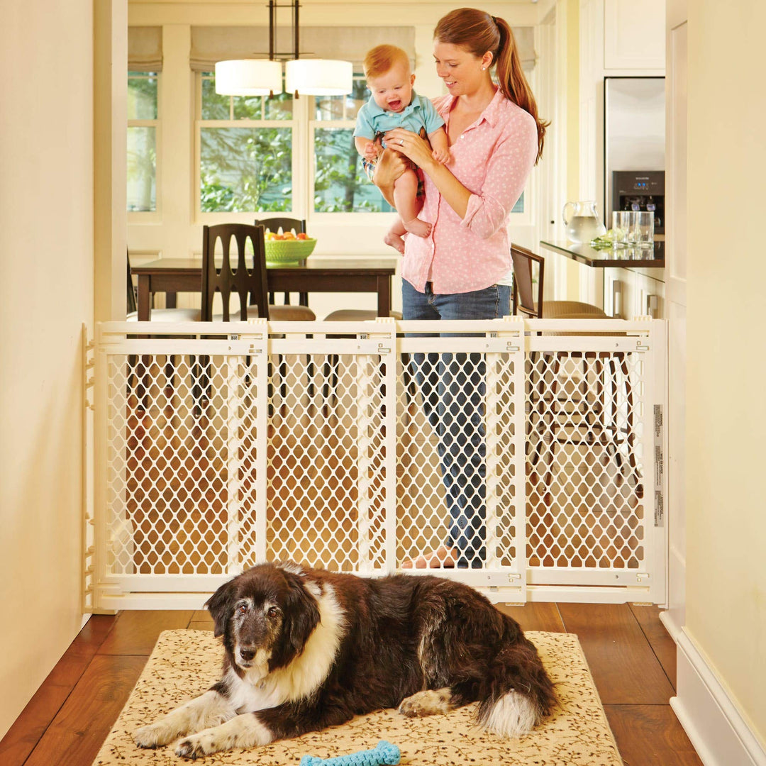 - Original Door & Stair Gates – North States MyPet Extra Wide Pet Gate: Smoothly Opens in Extra Wide Spaces. Fits 22 - 62 Wide. Hardware Mount. Made in USA. 31 Tall, Ivory by MYPET
